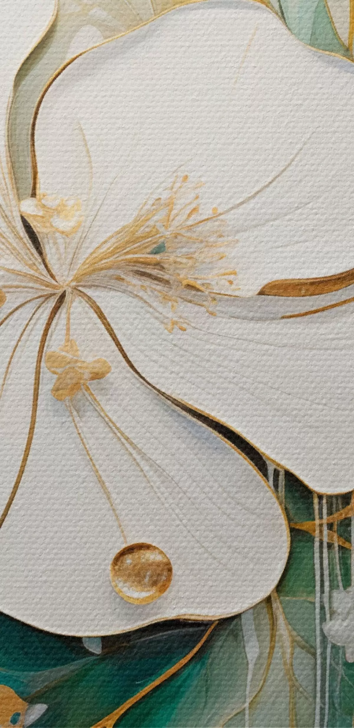 Картина Біла квітка з жовто-помаранчевими деталями та зеленим листям s45815