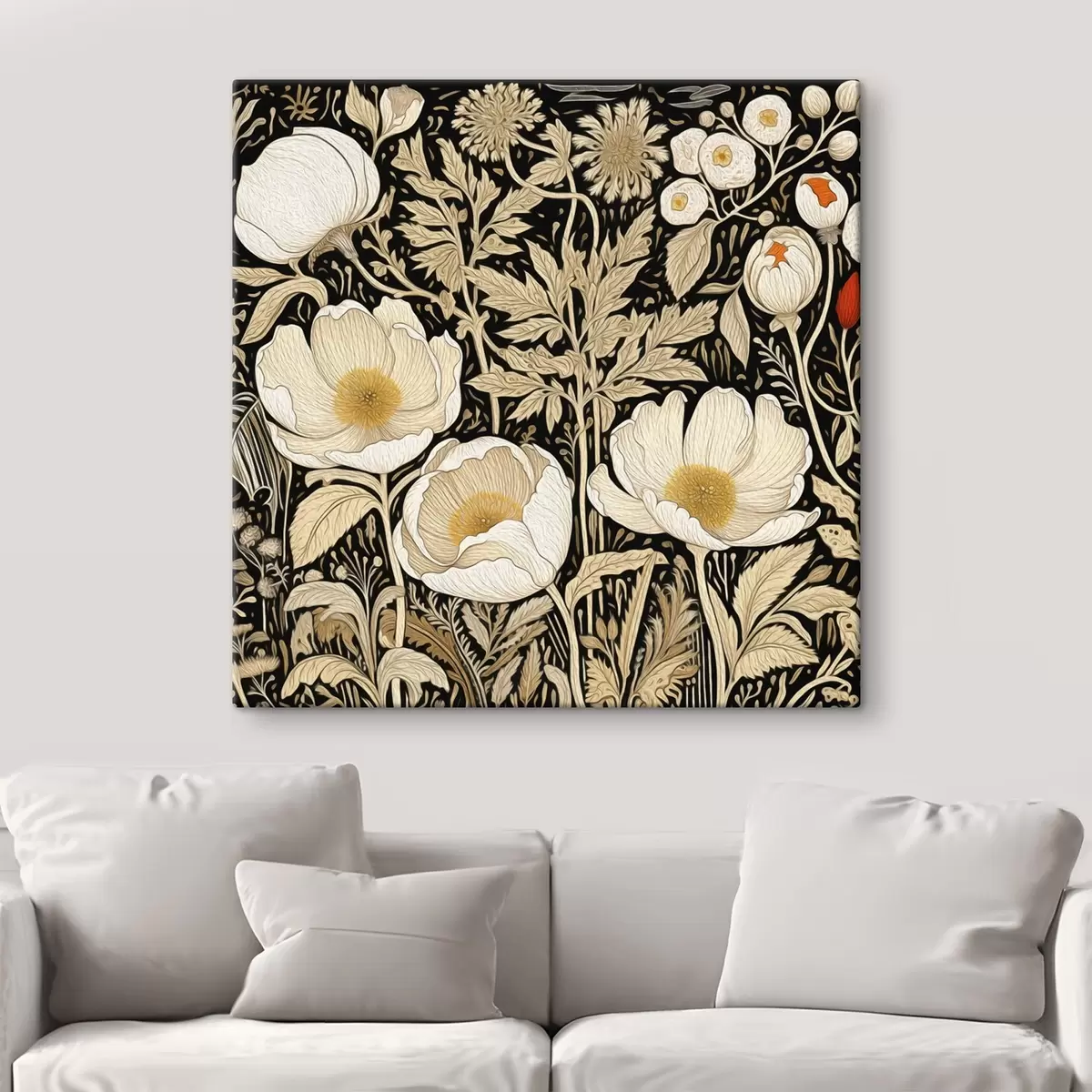Картина Кремові квіти та трави на чорному тлі Арт. s45816