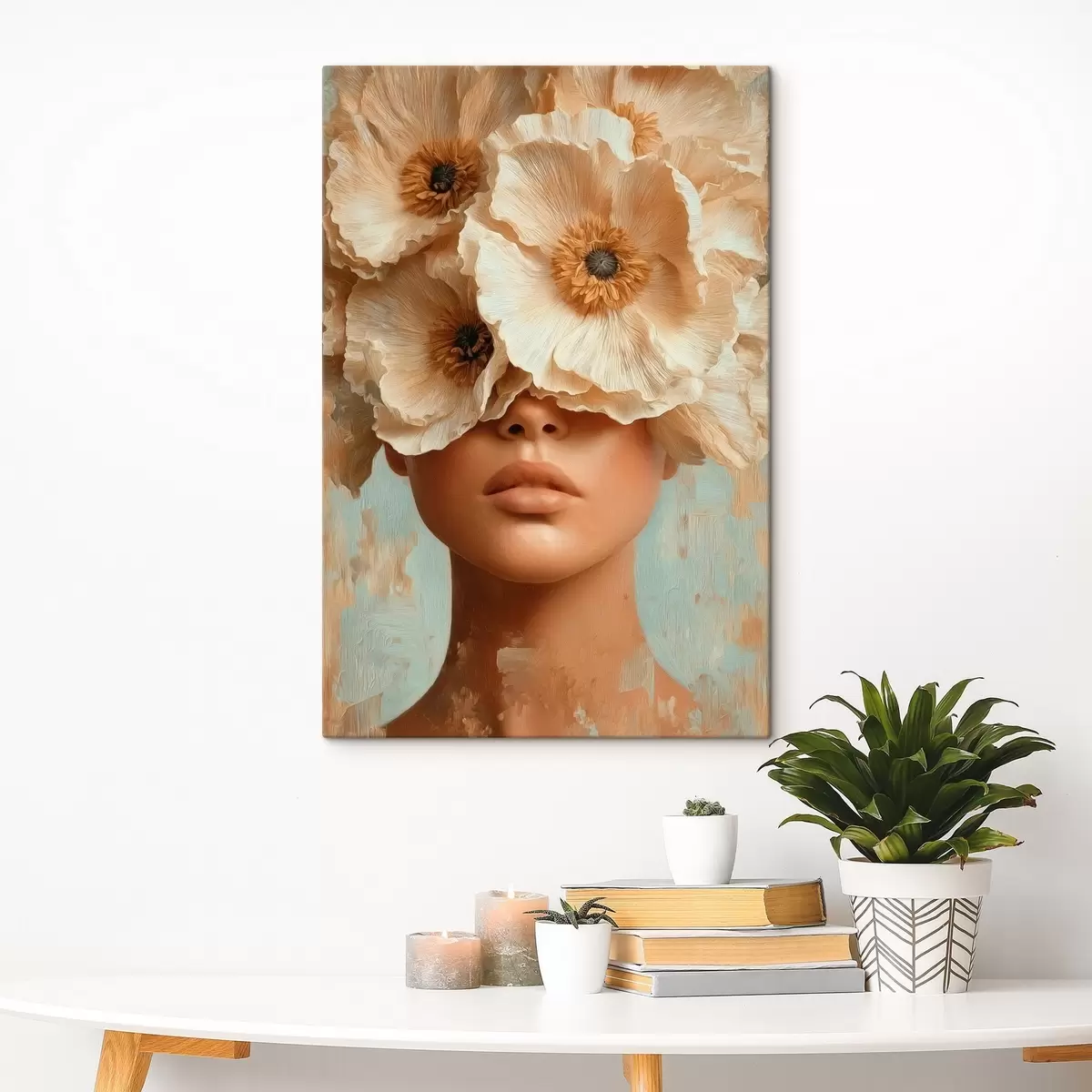 Картина Портрет з бежевими квітами, що прикривають очі s45870
