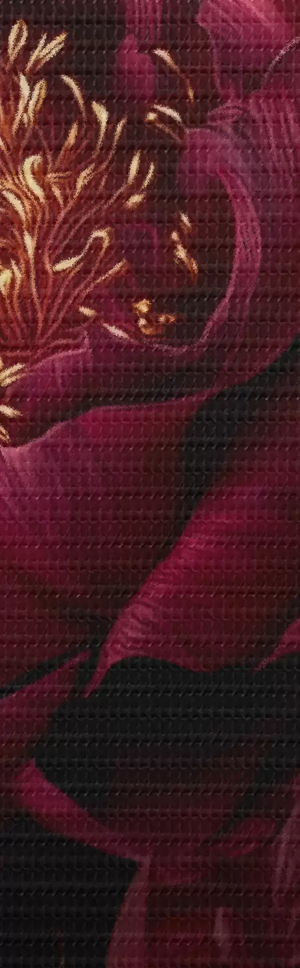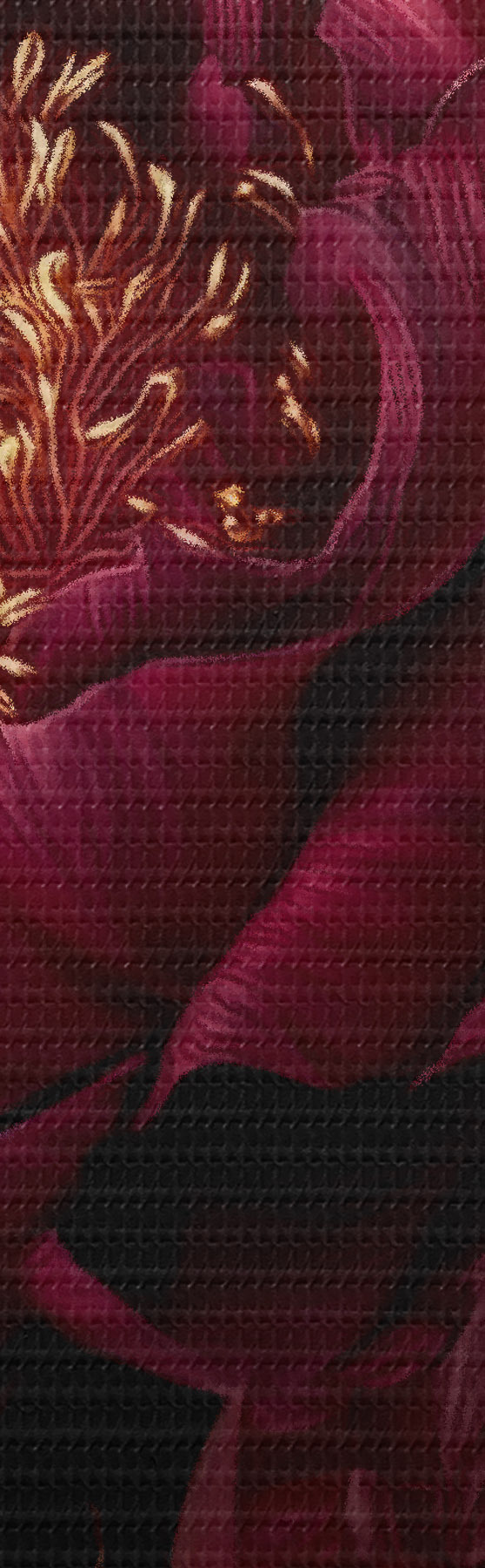 Картина Бургундські півонії на чорному тлі з жовтими акцентами s45877
