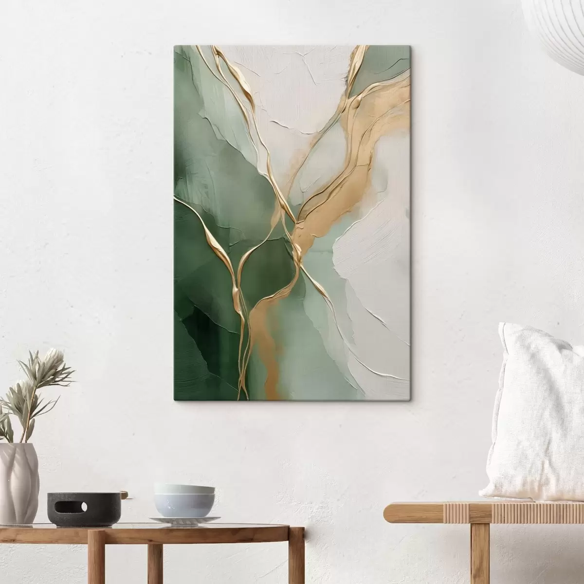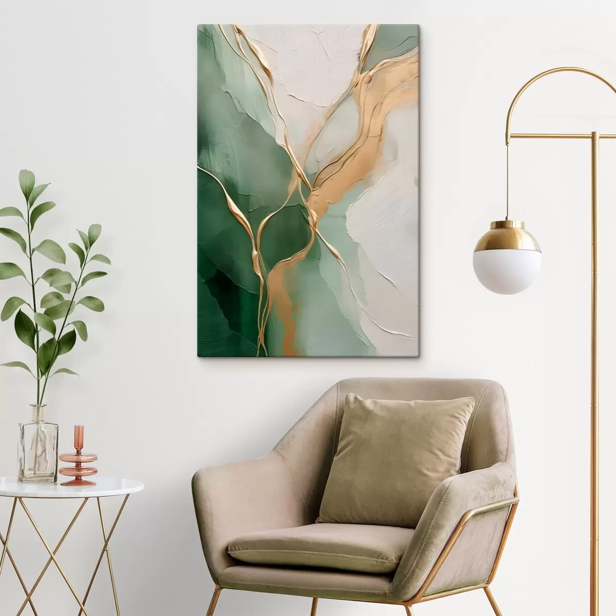 Картина Смарагдово-кремова абстракція з жовтими струмками s45887