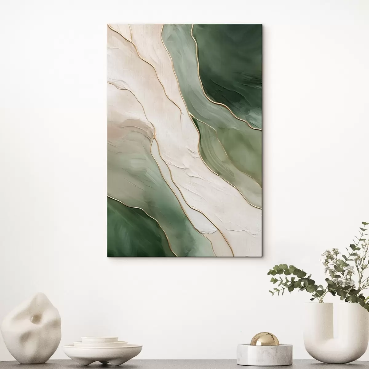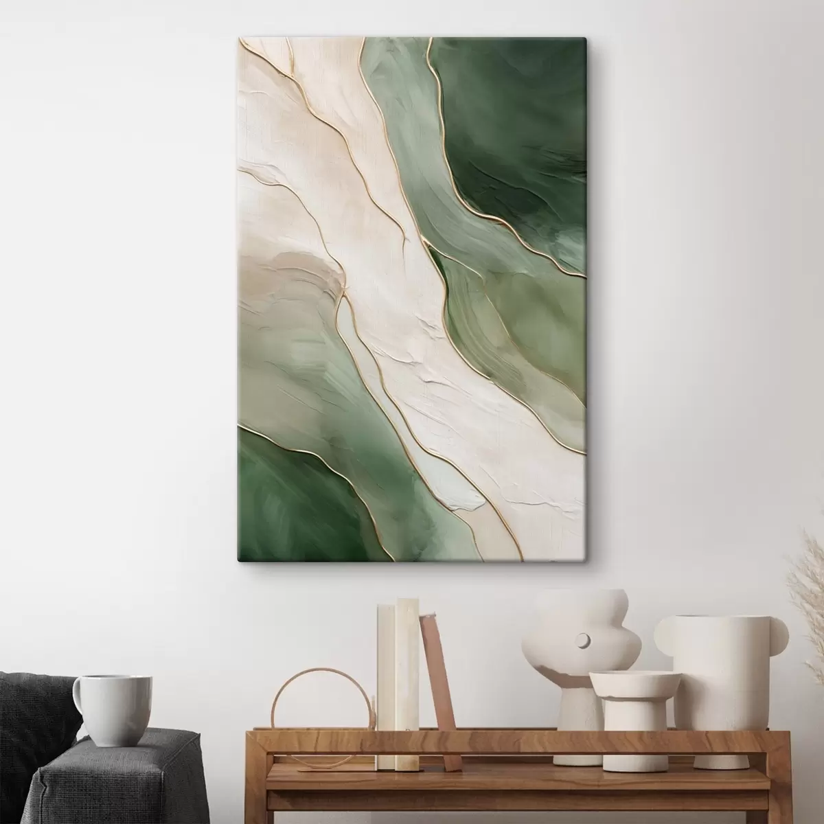 Картина Смарагдова абстракція з тонкими жовтими лініями s45888
