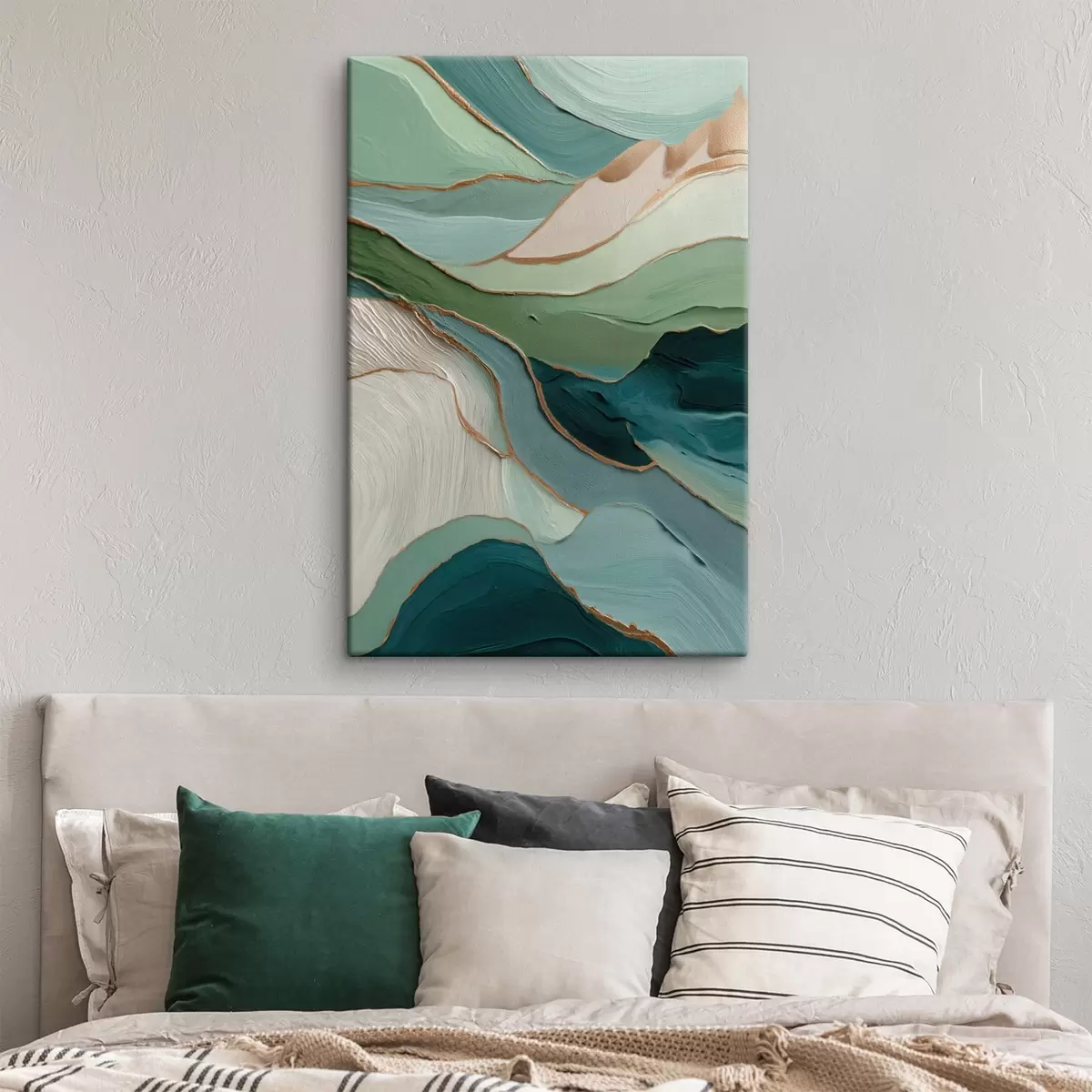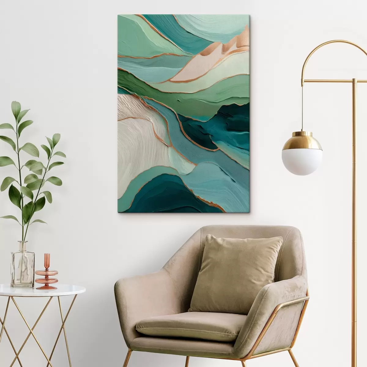 Картина Багатошарова зелена абстракція з жовтими лініями та глибиною Арт. s45902