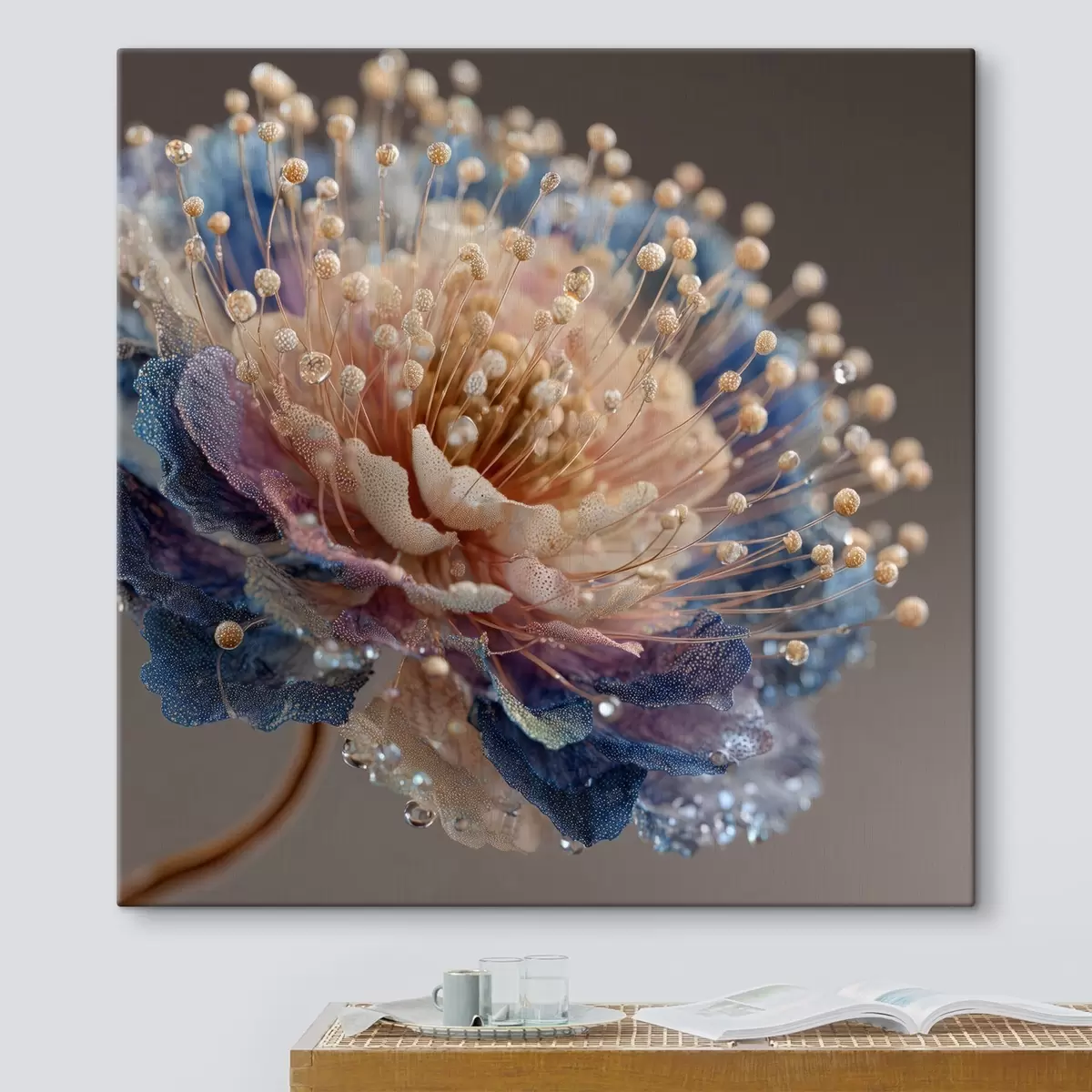 Картина Перламутровий квітка з краплями роси, персиково-блакитними пелюстками Арт. s45911