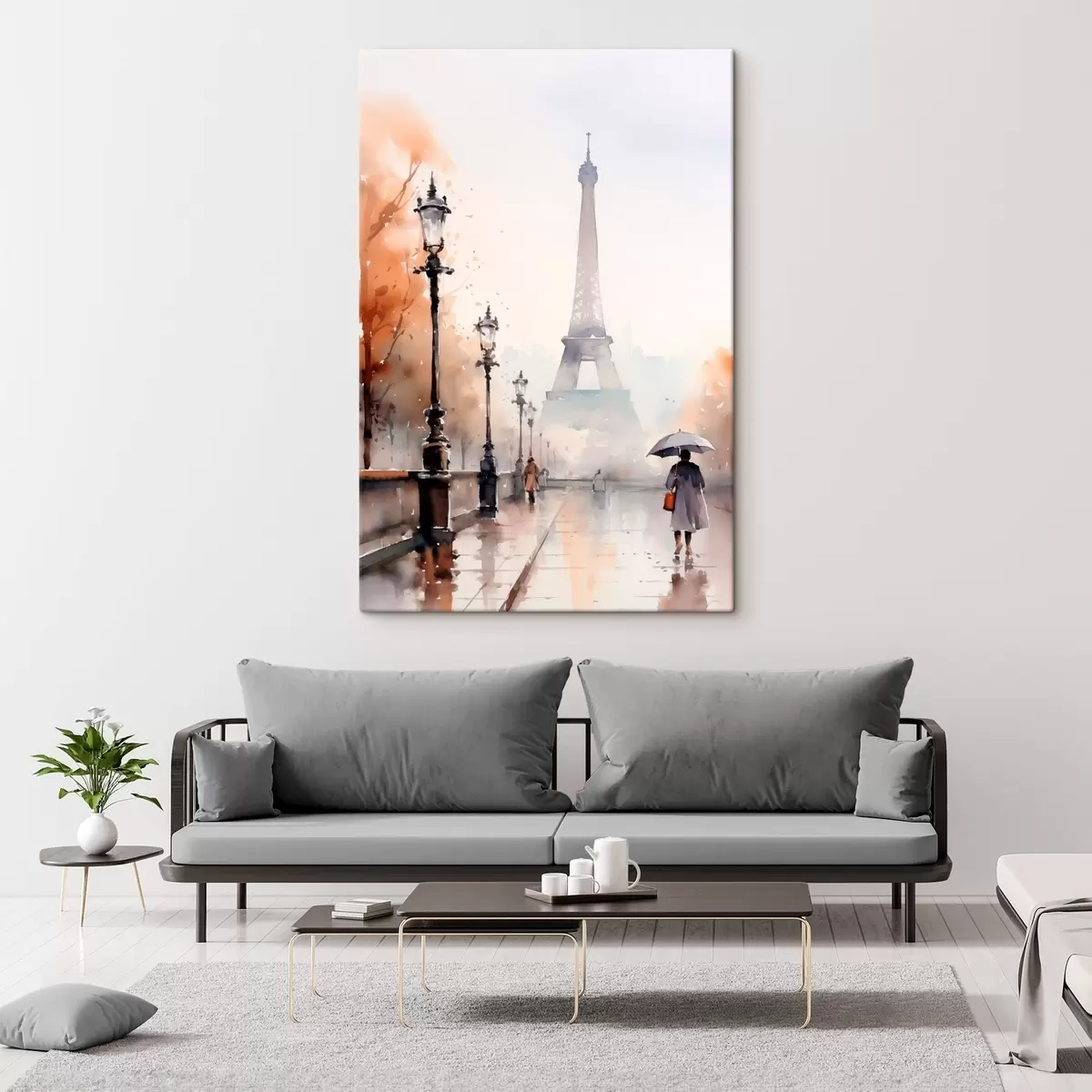 Картина Дощовий день у Парижі з Ейфелевою вежею на задньому плані та старовинними вуличними ліхтарями Арт. s45930