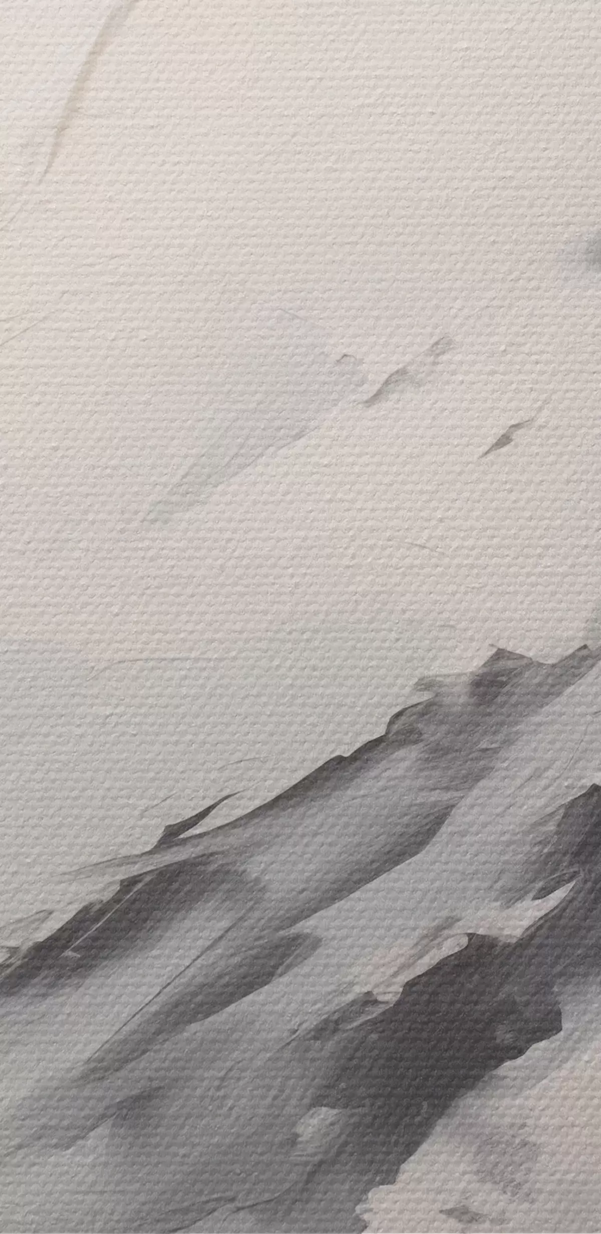 Картина Засніжені гірські вершини з сірими тінями, сіре небо, мазки пензлем, текстуровані, мінімалістичні s45932