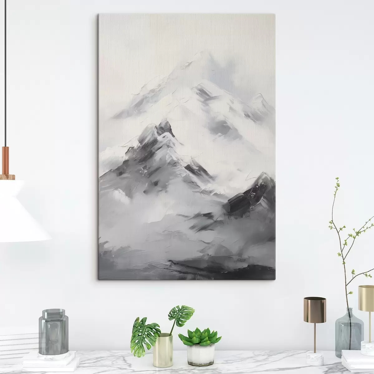Картина Засніжені гірські вершини з сірими тінями, сіре небо, мазки пензлем, текстуровані, мінімалістичні Арт. s45933
