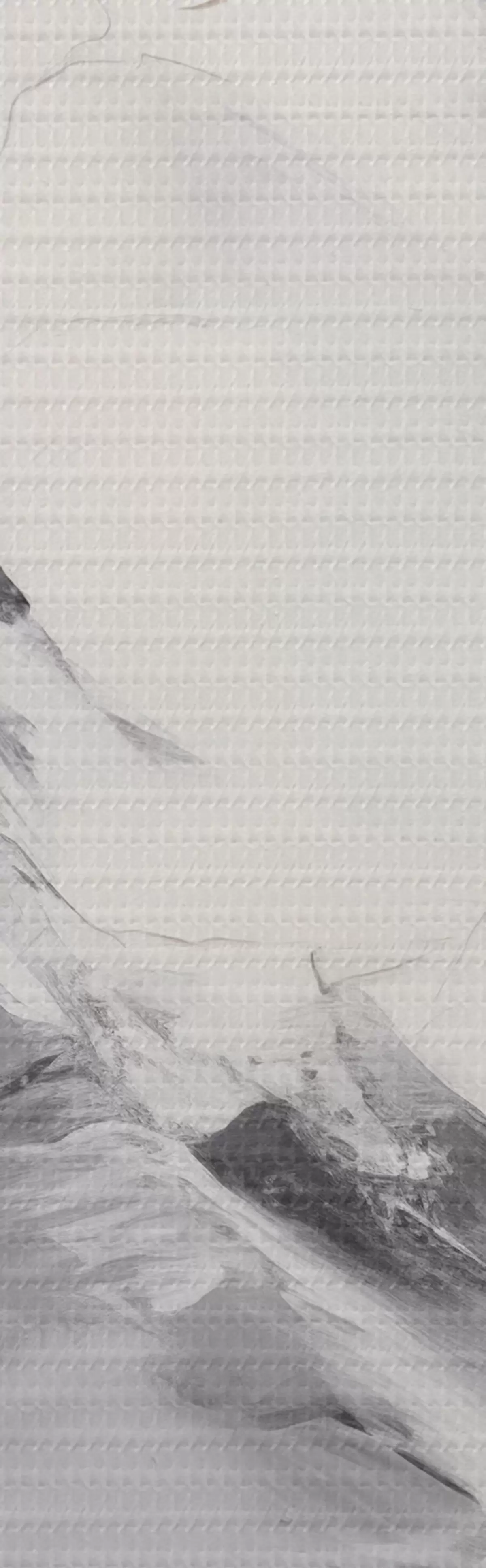 Картина Засніжені гірські вершини з сірими тінями, сіре небо, мазки пензлем, текстуровані, мінімалістичні s45933
