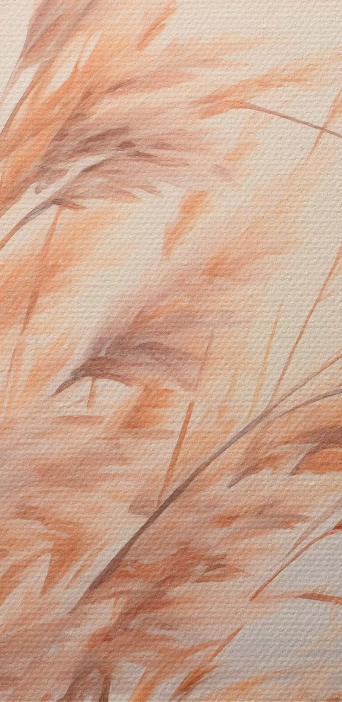 Картина Трава пампас з пастельною помаранчевою кольоровою гамою, світло-рожеве небо, спокійний пейзаж Арт. s45934