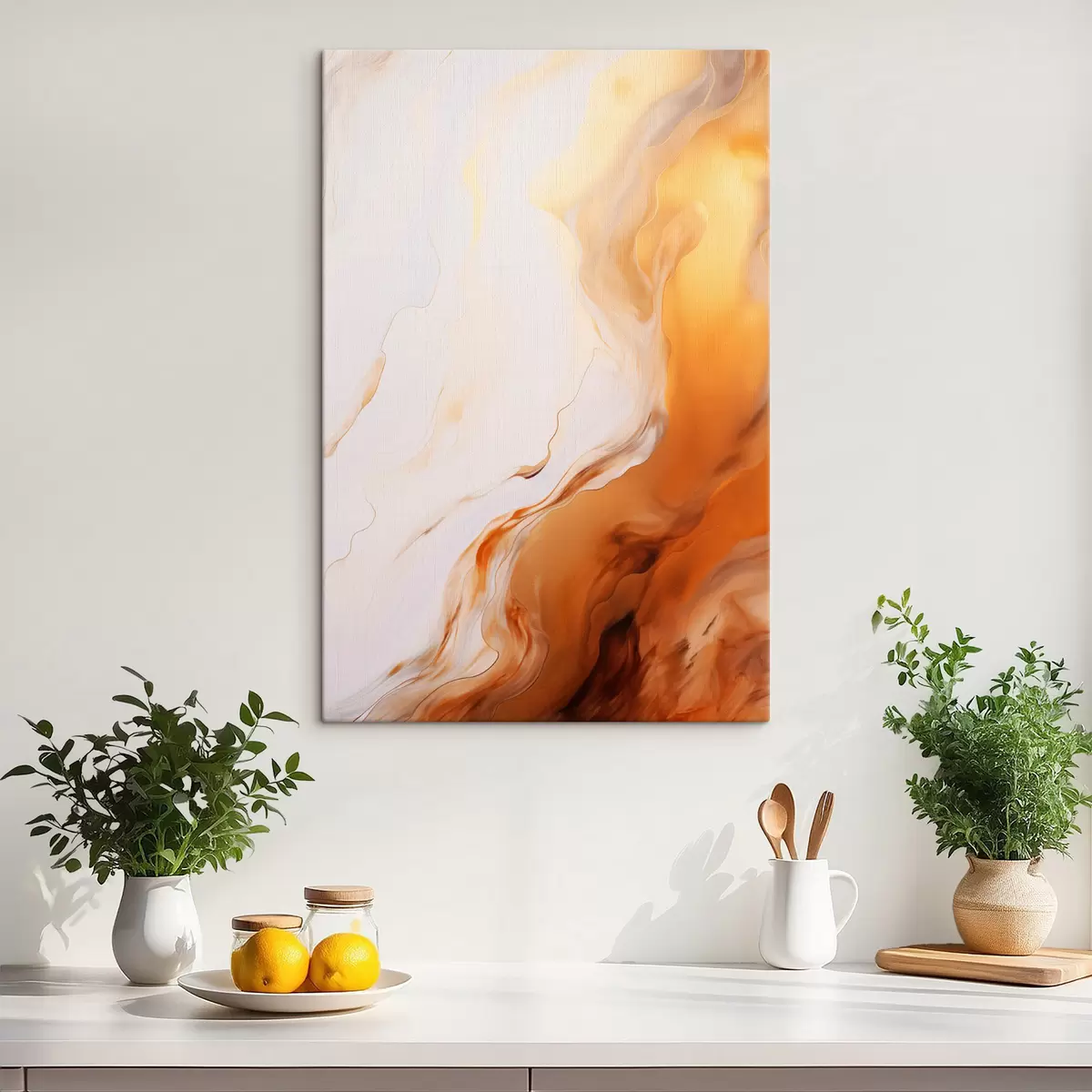 Картина Абстрактна імітація живопису білими та помаранчевими кольорами, флюїдне мистецтво з хвилястими лініями, сучасне мистецтво Арт. s45939