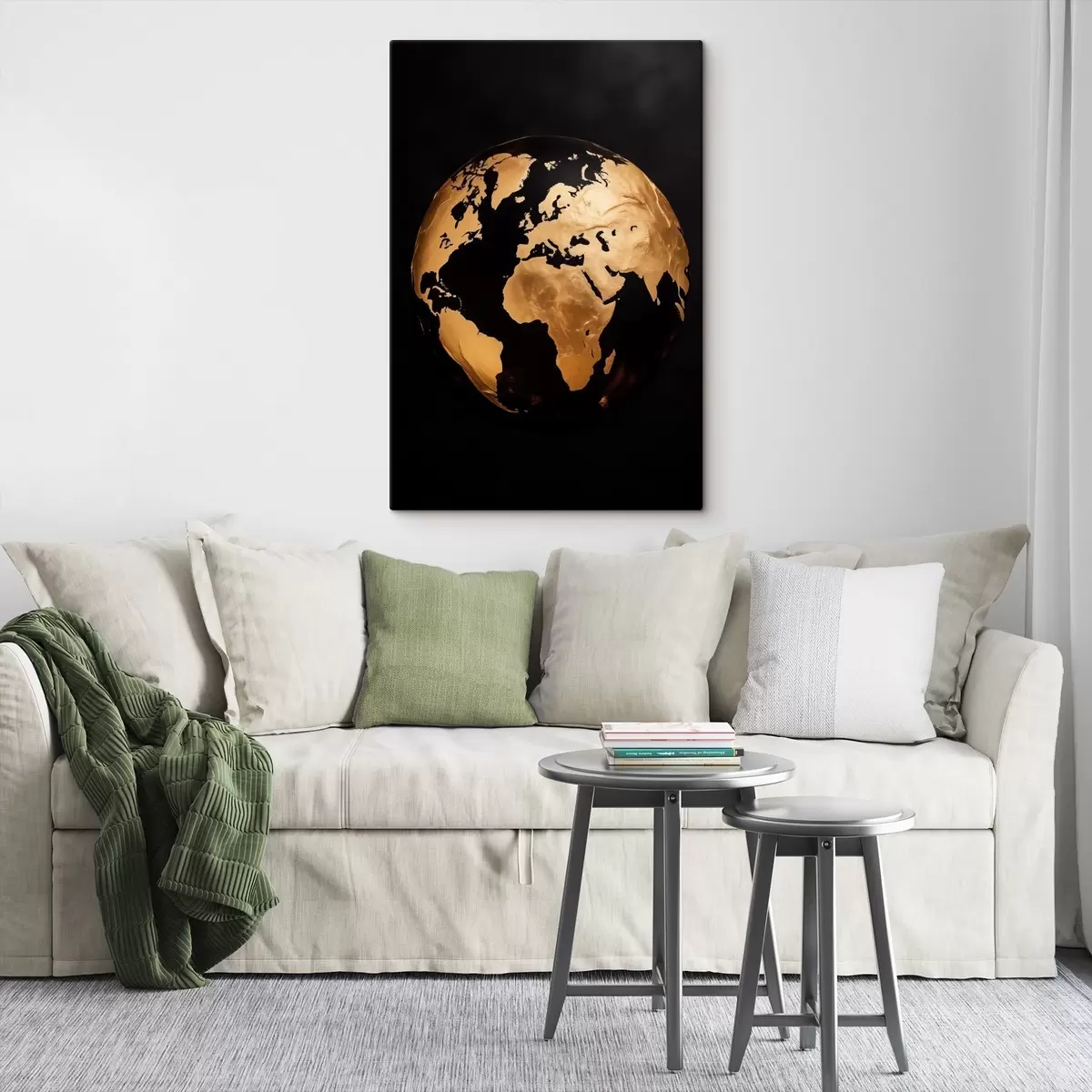 Картина Жовтий текстурований абстрактний земний шар, планета на чорному тлі, сучасне мінімалістичне мистецтво Арт. s45942