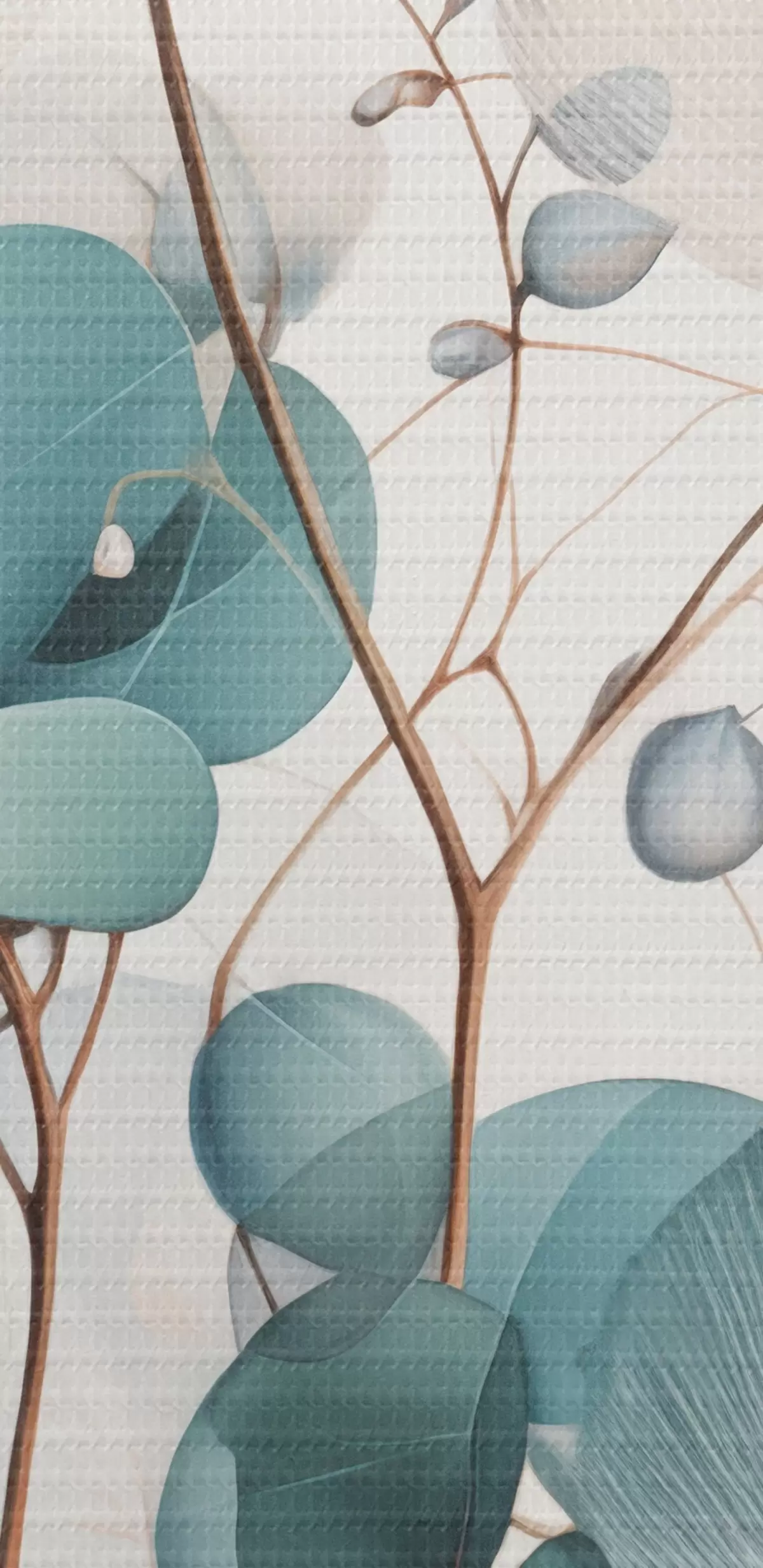 Картина Абстрактні квіти евкаліпта з білими пелюстками, приглушені зелені листя на гілках Арт. s45946