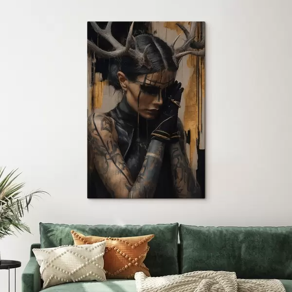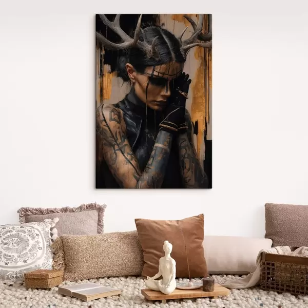 Картина Жінка з рогами в темному образі з чорними лініями на обличчі Арт. s46144