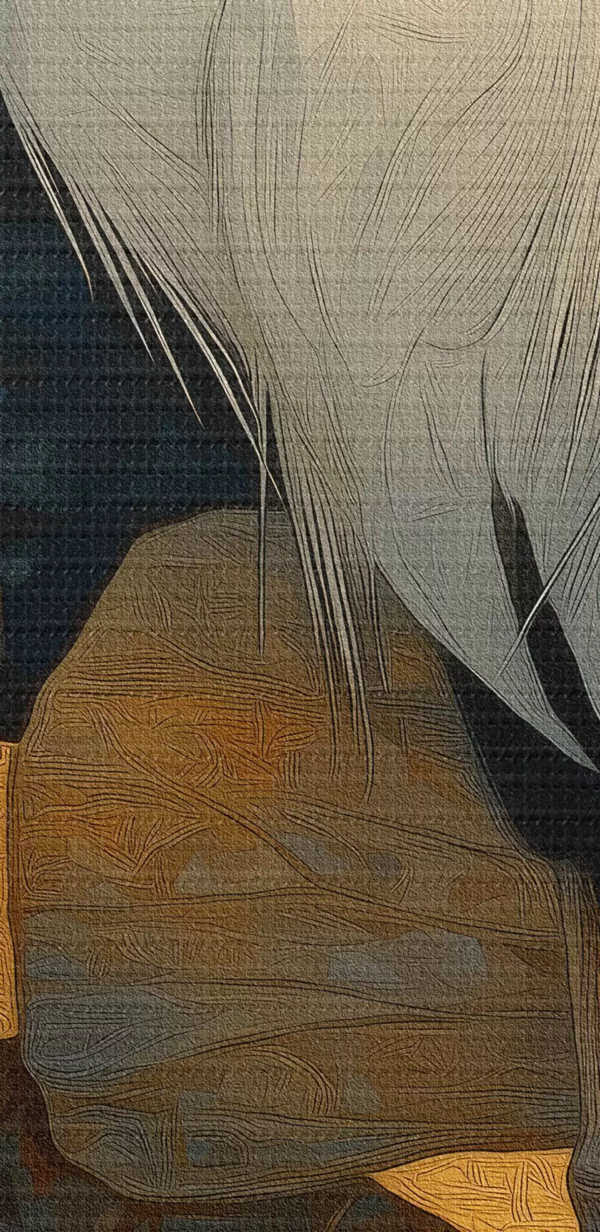 Картина Біла чапля серед великих листя на теплому тлі Арт. s46147