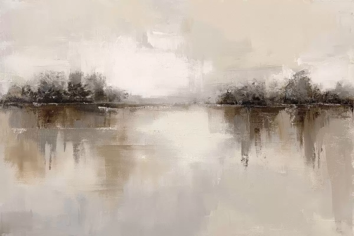 Картина М'який ландшафт з озером в теплих бежево-сірих тонах Арт. s46158