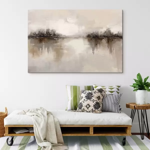 Картина М'який ландшафт з озером в теплих бежево-сірих тонах s46158