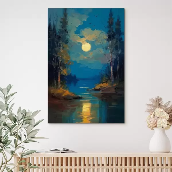 Картина Місячне світло над спокійною річкою серед сосен Арт. s46164