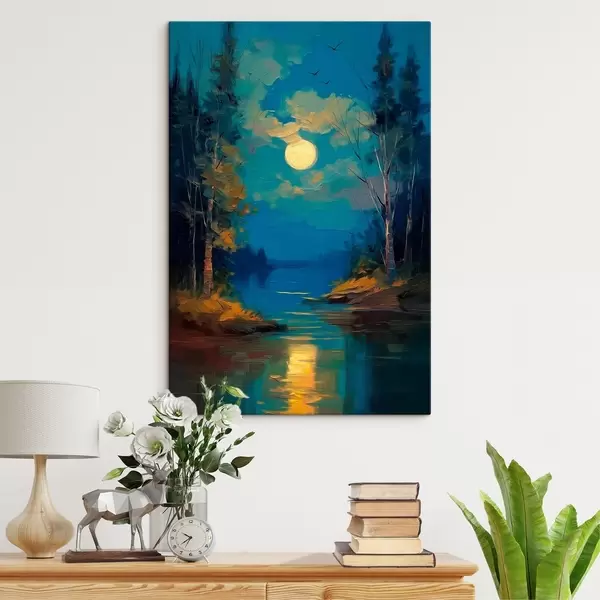 Картина Місячне світло над спокійною річкою серед сосен s46164