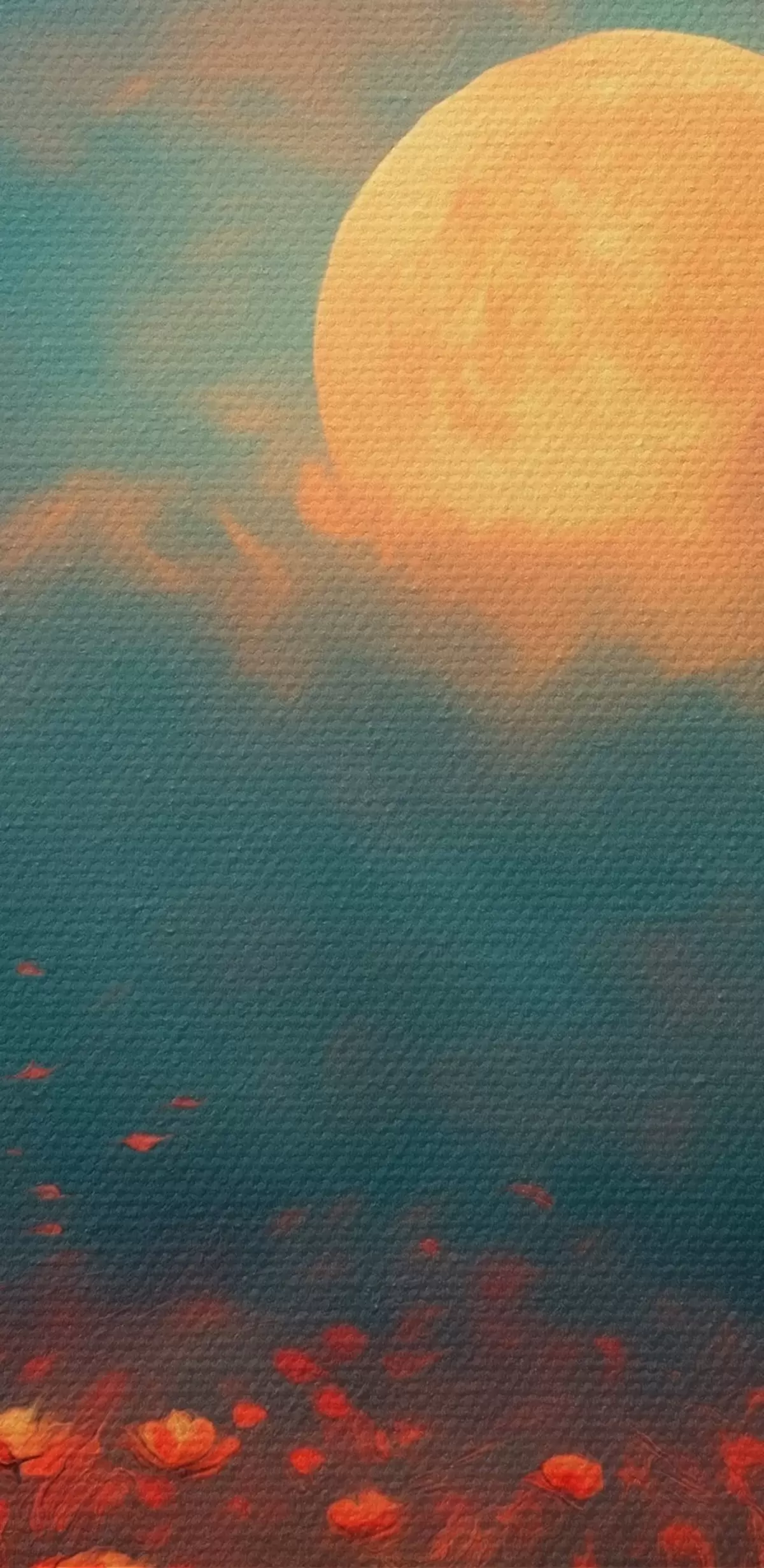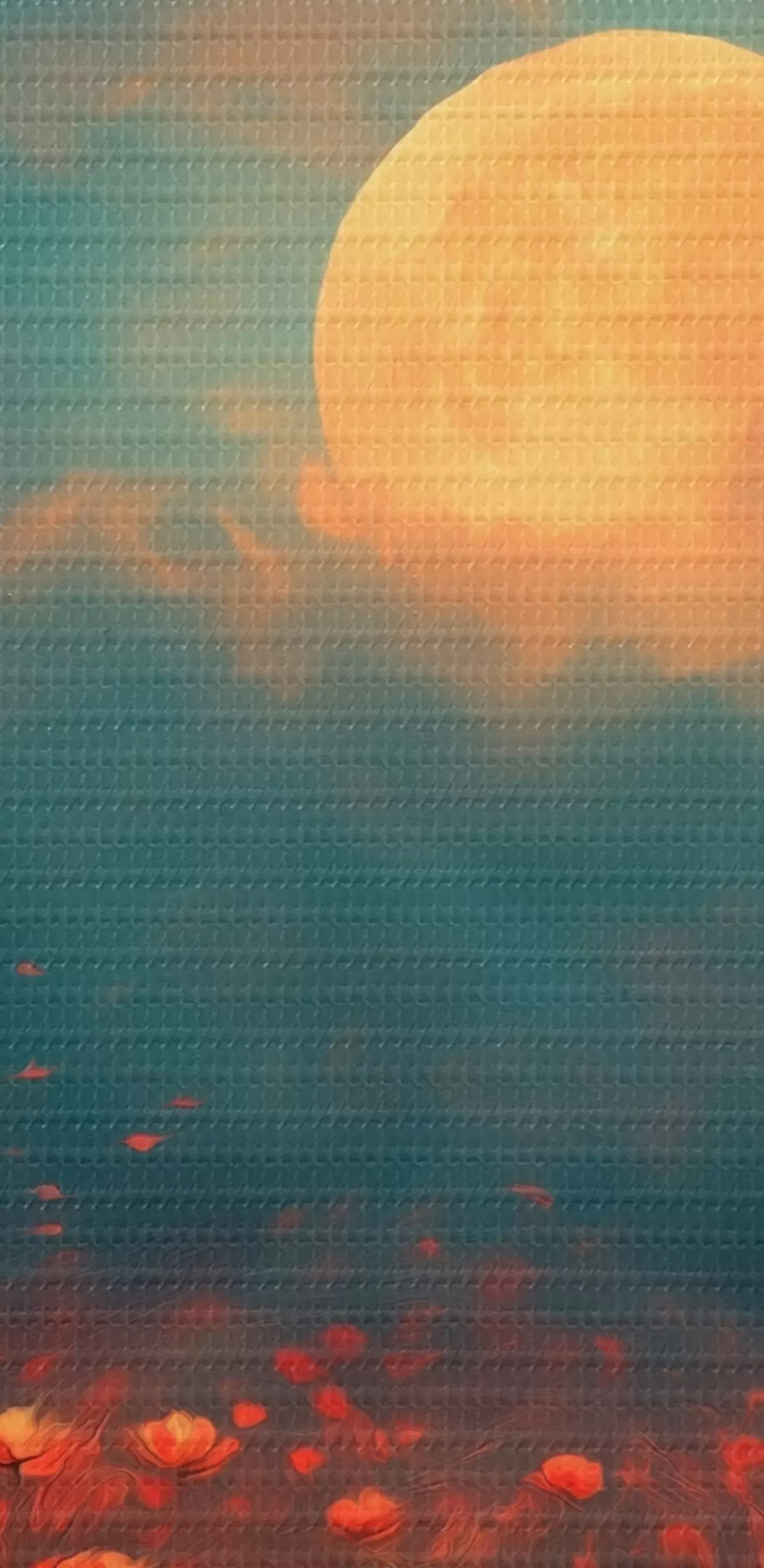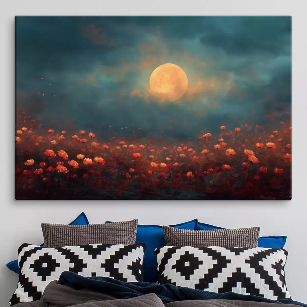 Картина Місяць над полем червоних квітів у туманному вечірньому небі Арт. s46167