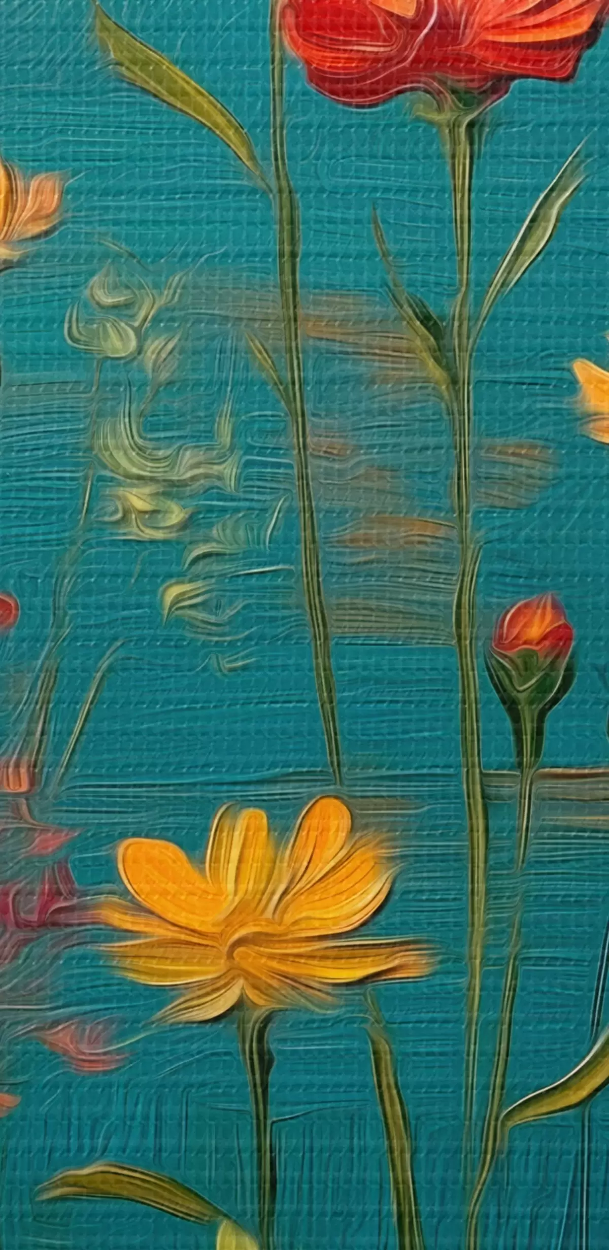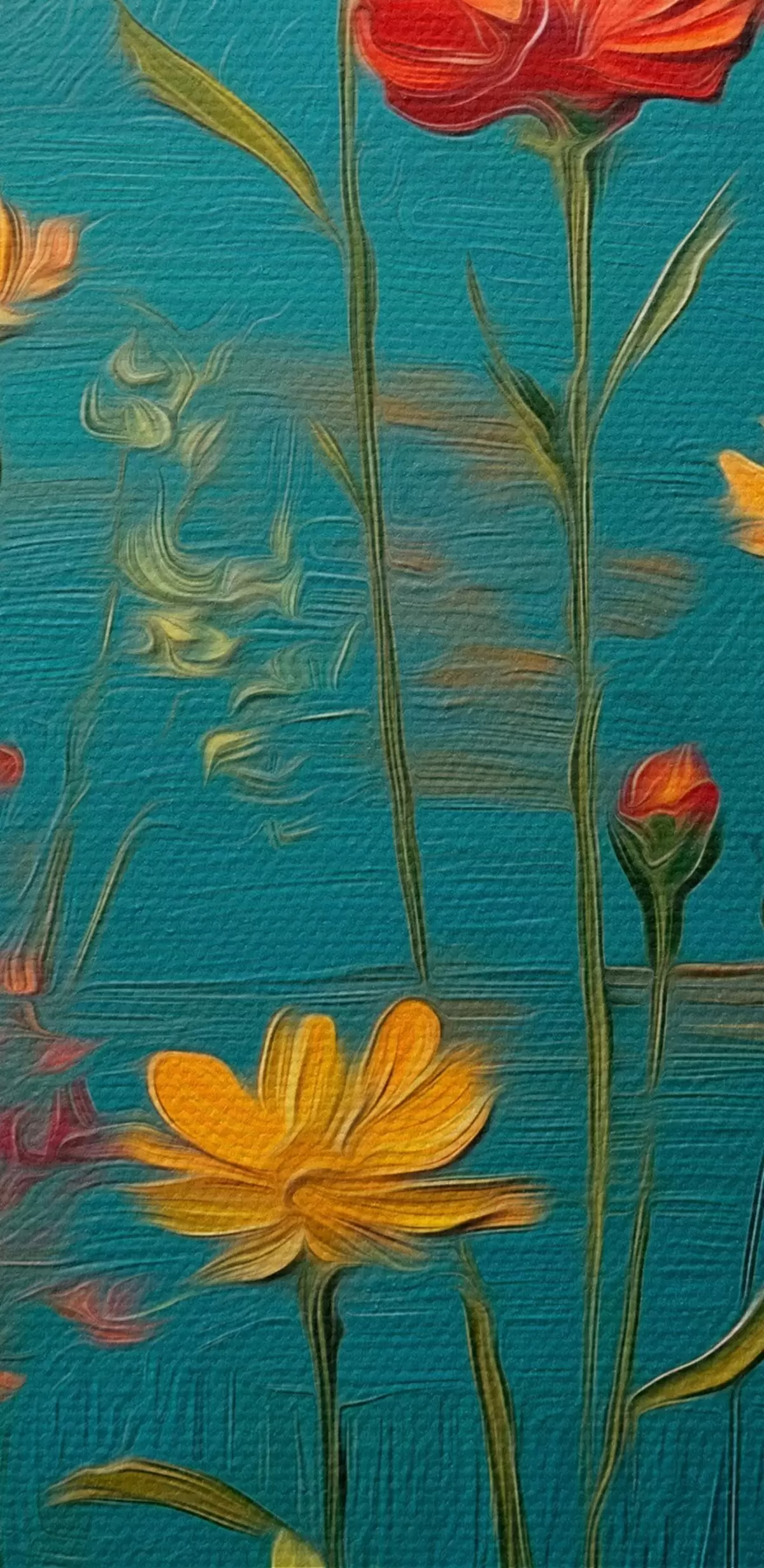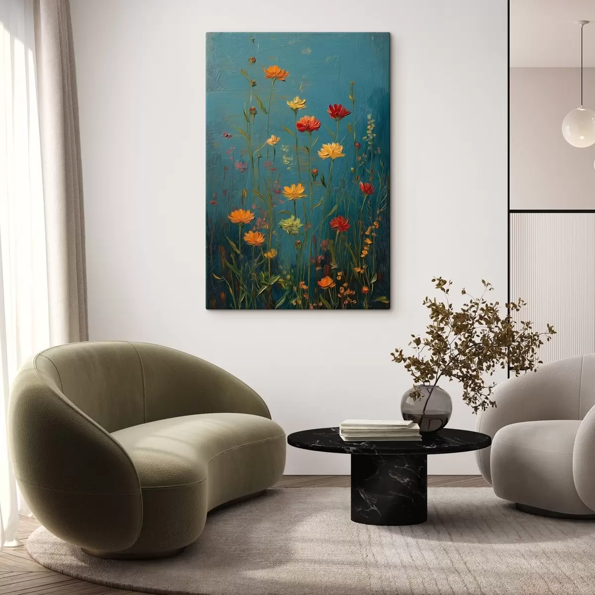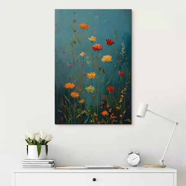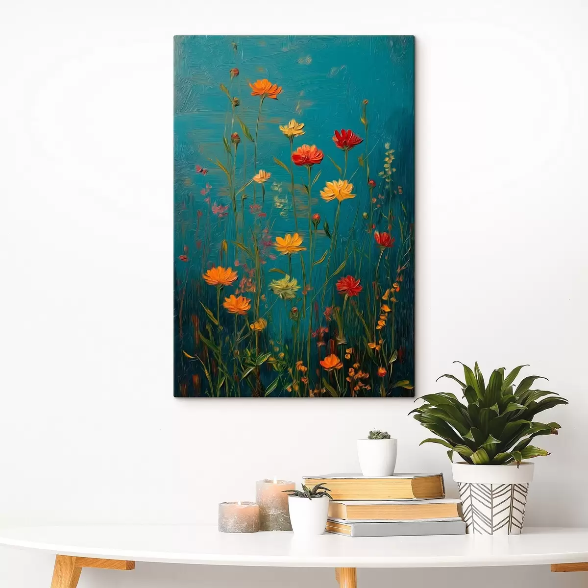 Картина Польові квіти на глибокому бірюзовому тлі s46169