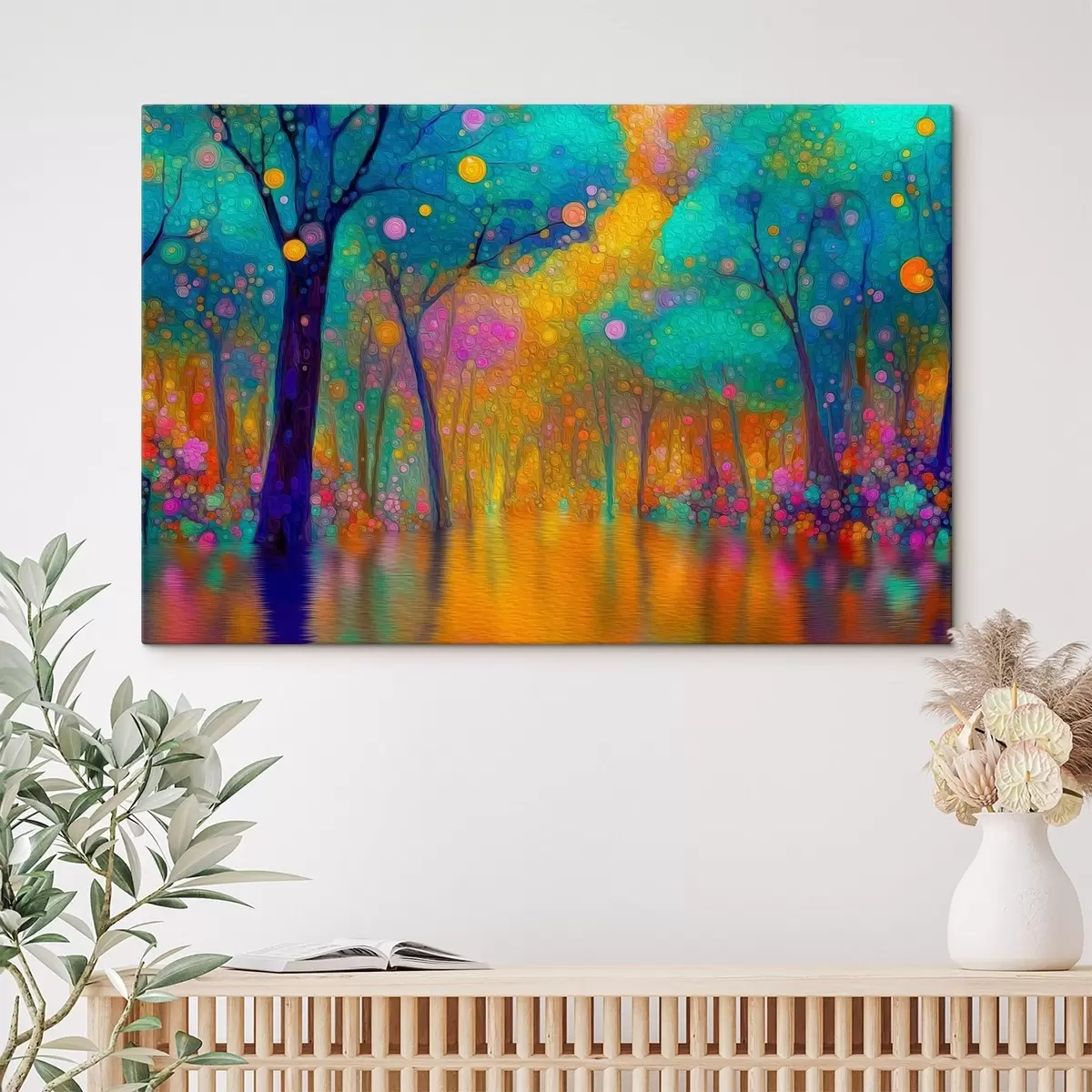 Картина Яскравий фантастичний ліс з відблисками у воді Арт. s46171
