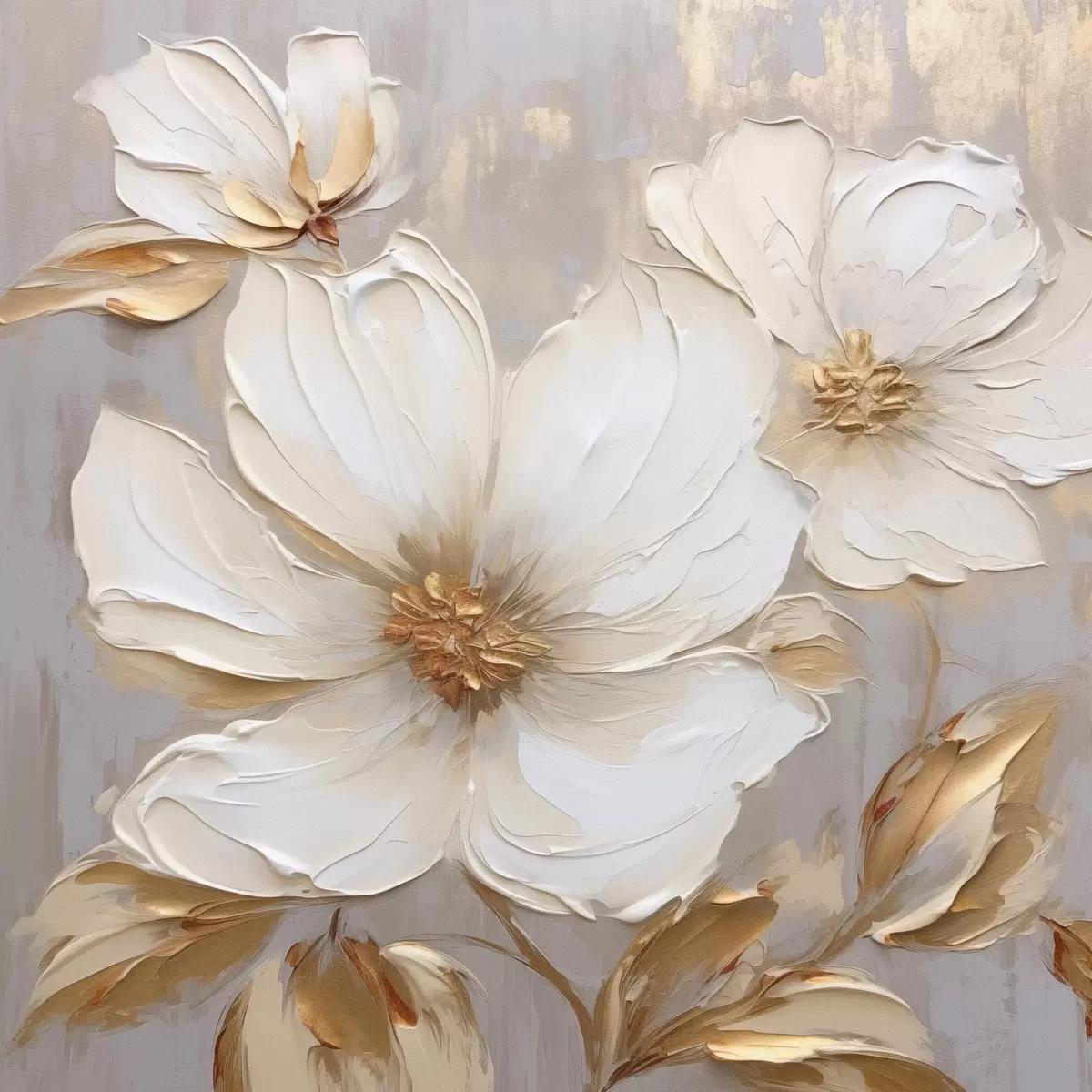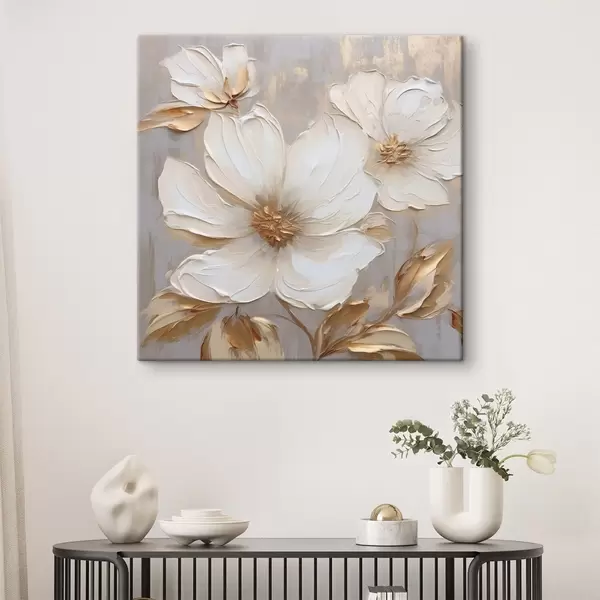 Картина Великі текстурні квіти з мазками фарби в теплій палітрі Арт. s46176
