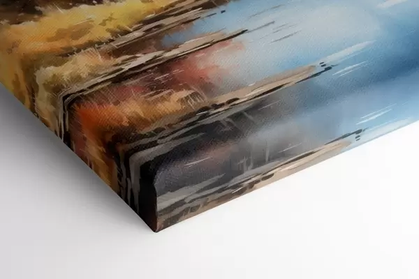 Картина Осінній пейзаж біля озера з будинком і горами s46184