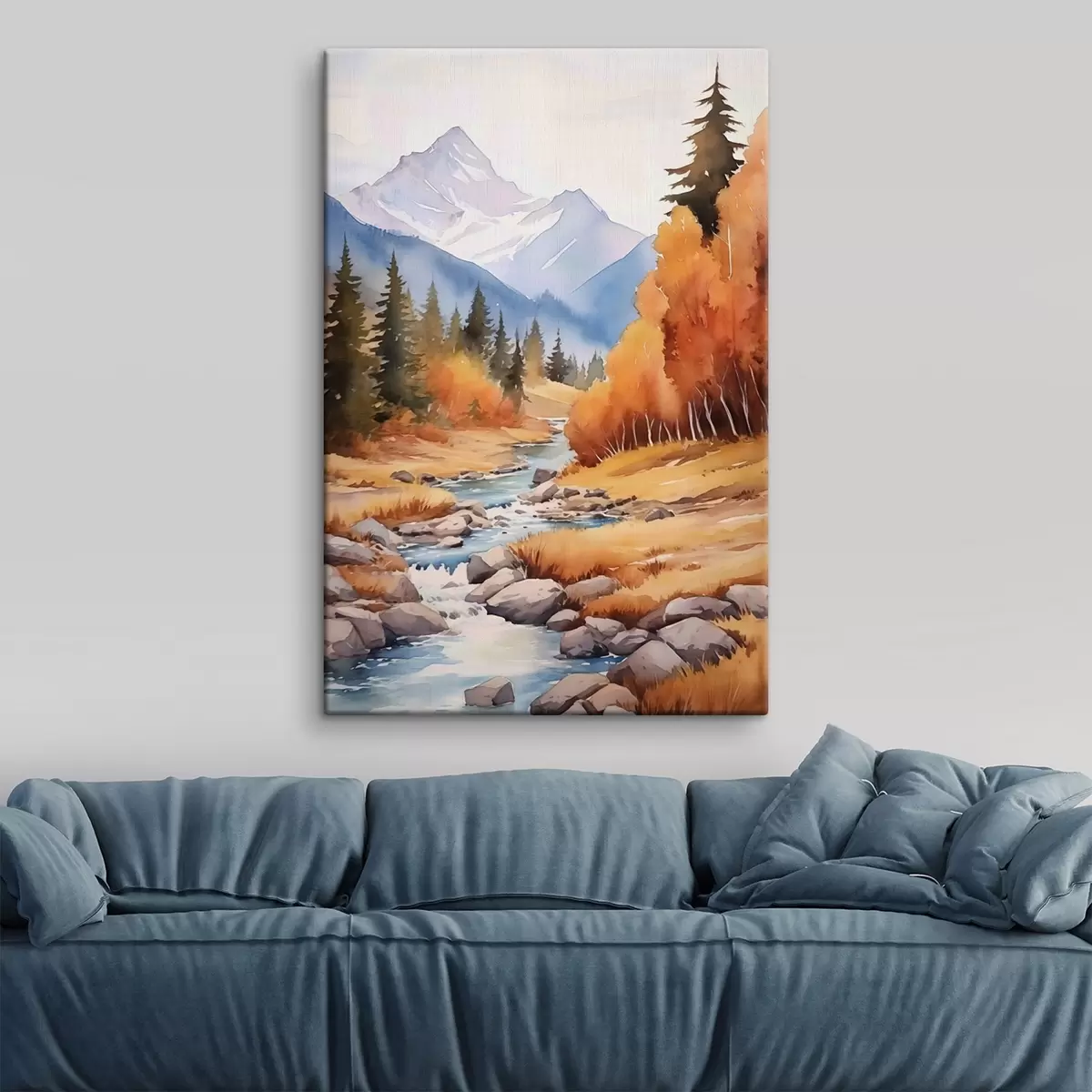 Картина Осінній гірський пейзаж з річкою та яскравим лісом Арт. s46187