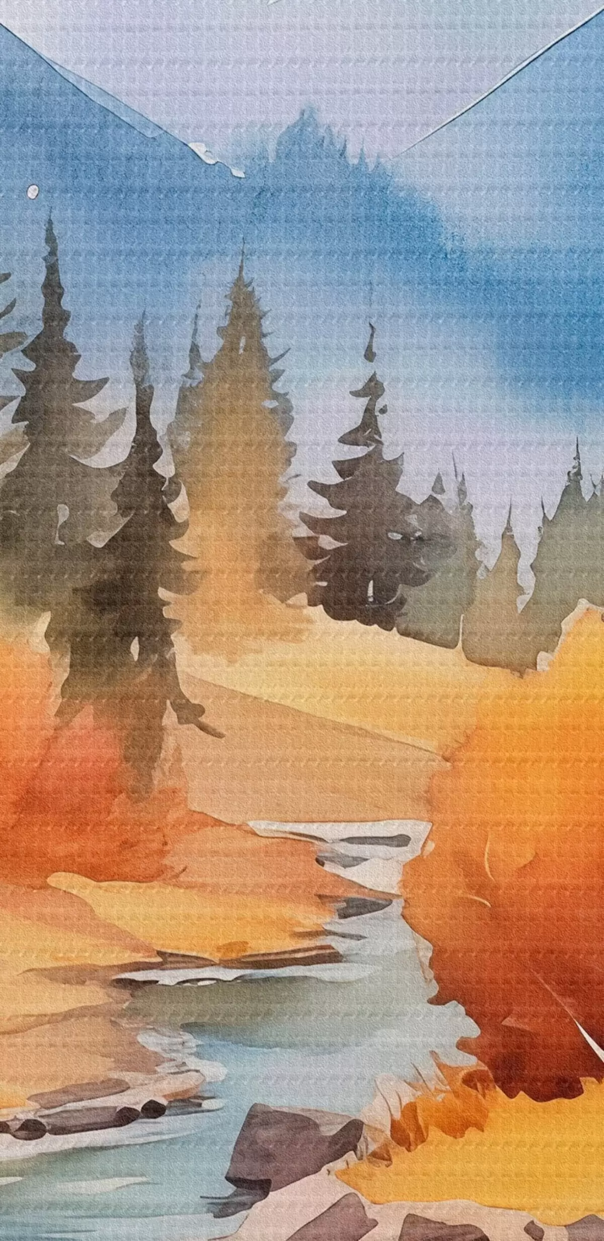 Картина Осінній гірський пейзаж з річкою та яскравим лісом s46187