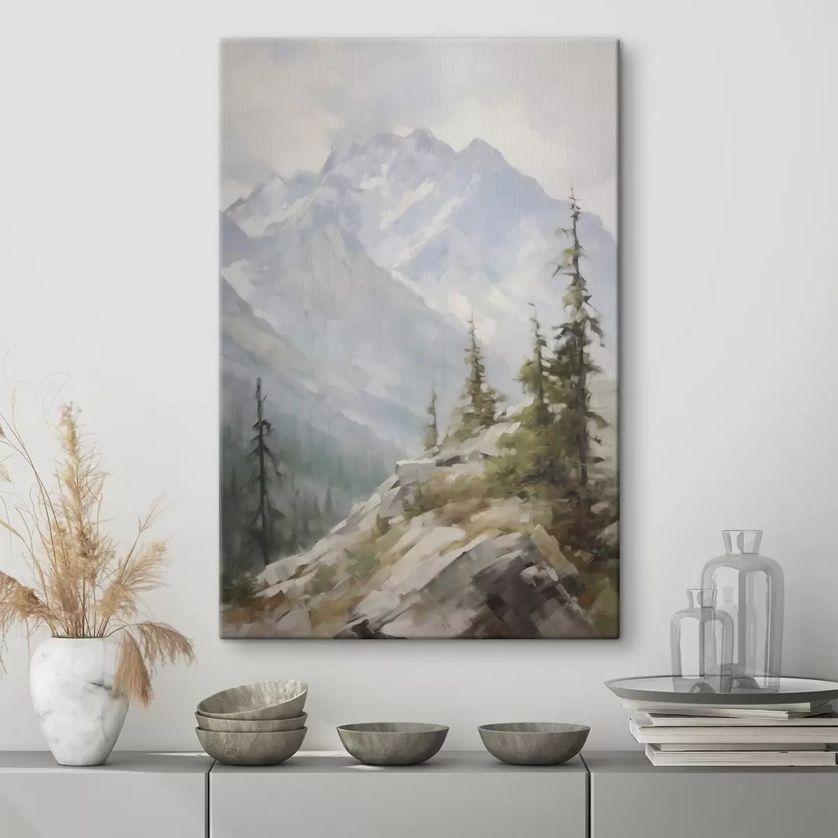 Картина Ялини на тлі гір s46202
