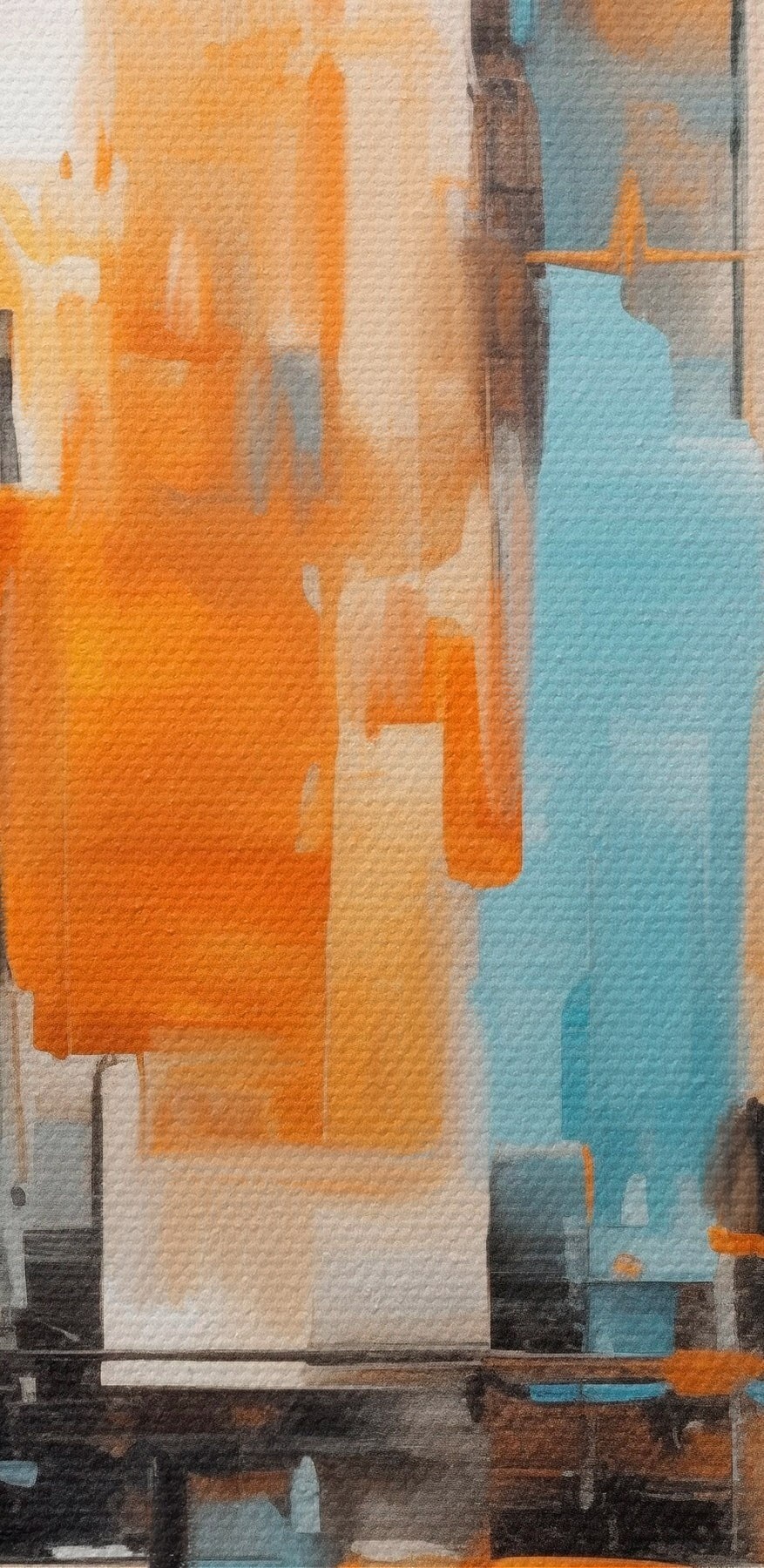 Картина Абстрактний міський пейзаж з вертикальними мазками в відтінках оранжевого, синього та білого, стиль живопису s46267