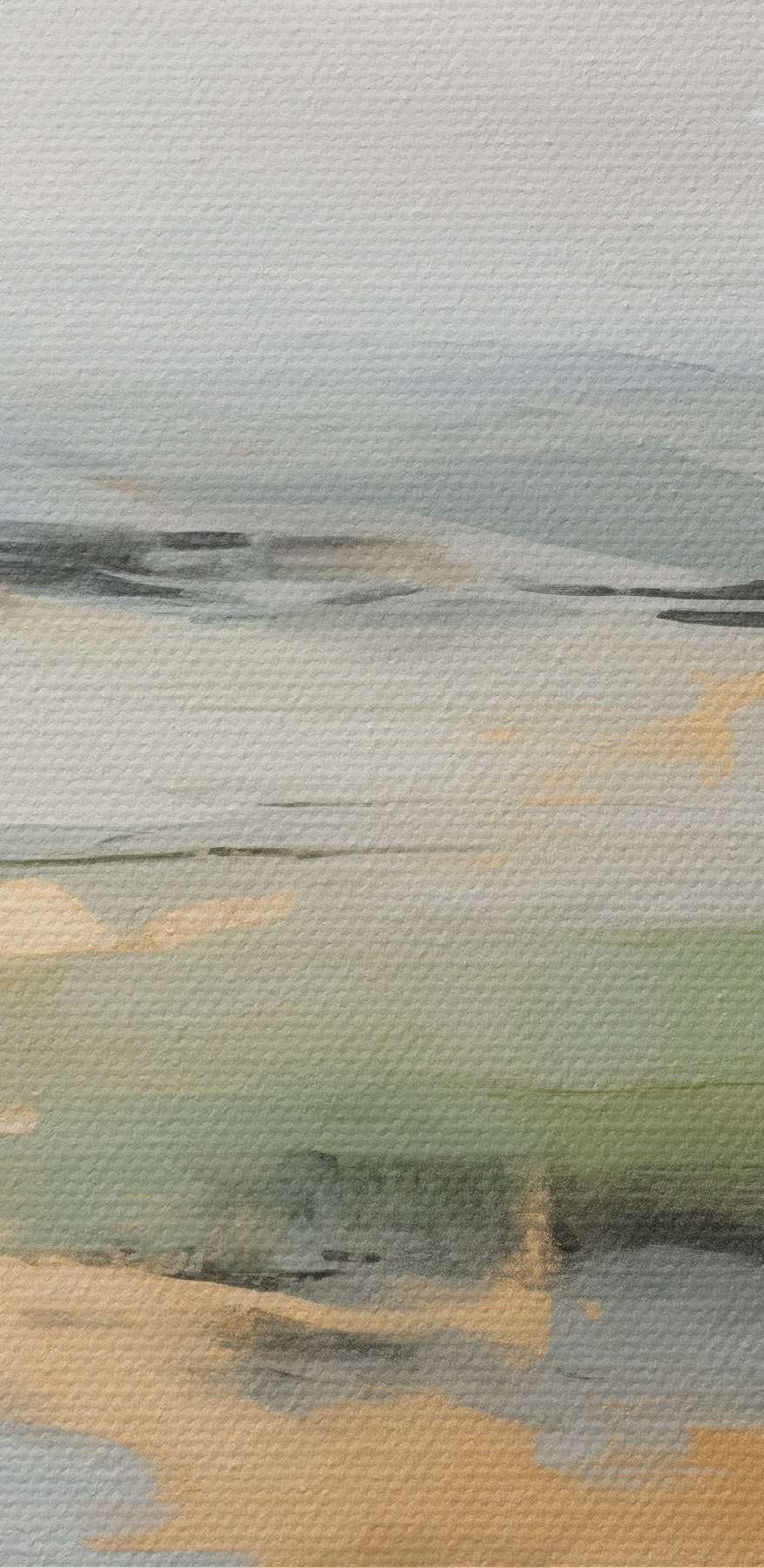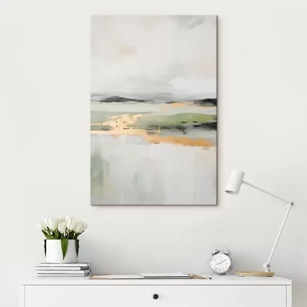 Картина Абстрактний пейзаж з жовтими акцентами, мінімалістична композиція землі, води та неба, з приглушеними кольорами s46269
