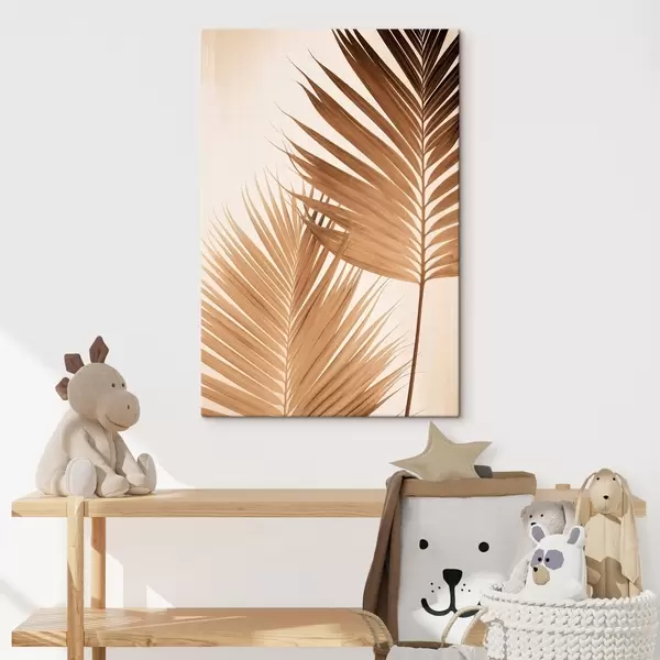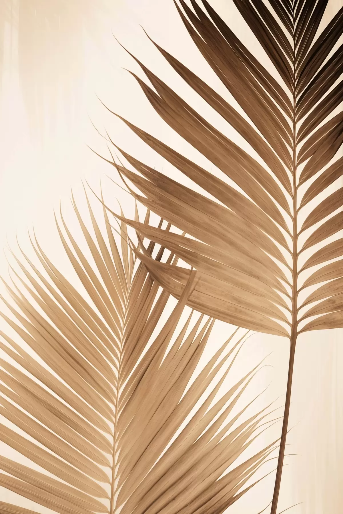 Картина Пальмове листя в коричневих тонах, нейтральний фон, мінімалістичний стиль, природне освітлення, тропічна атмосфера s46274