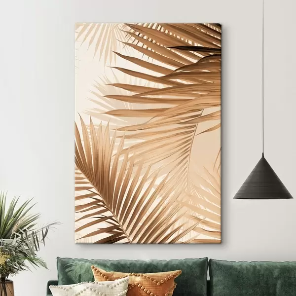 Картина Абстрактні пальмові листя в коричневих тонах, тропічні, ботанічні, природа, мінімалістичний, елегантний, сучасний дизайн s46275