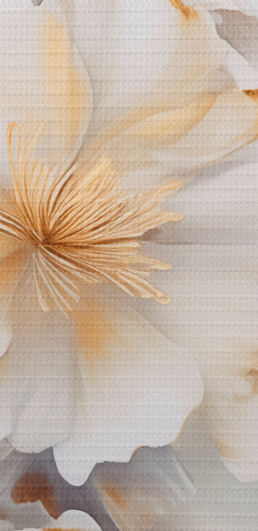Картина Білі квіти з жовтими деталями, пелюстки з легкими тінями, світлий фон з легким мармуровим ефектом Арт. s46292