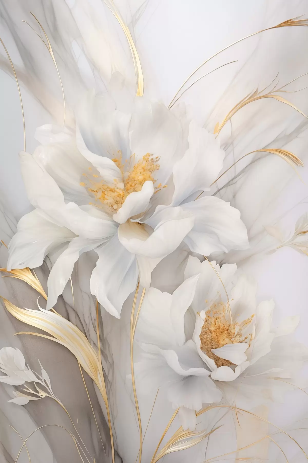 Картина Білі квіти з жовтими маточками і стеблами, ніжні пелюстки, витончена композиція, нейтральний фон s46293