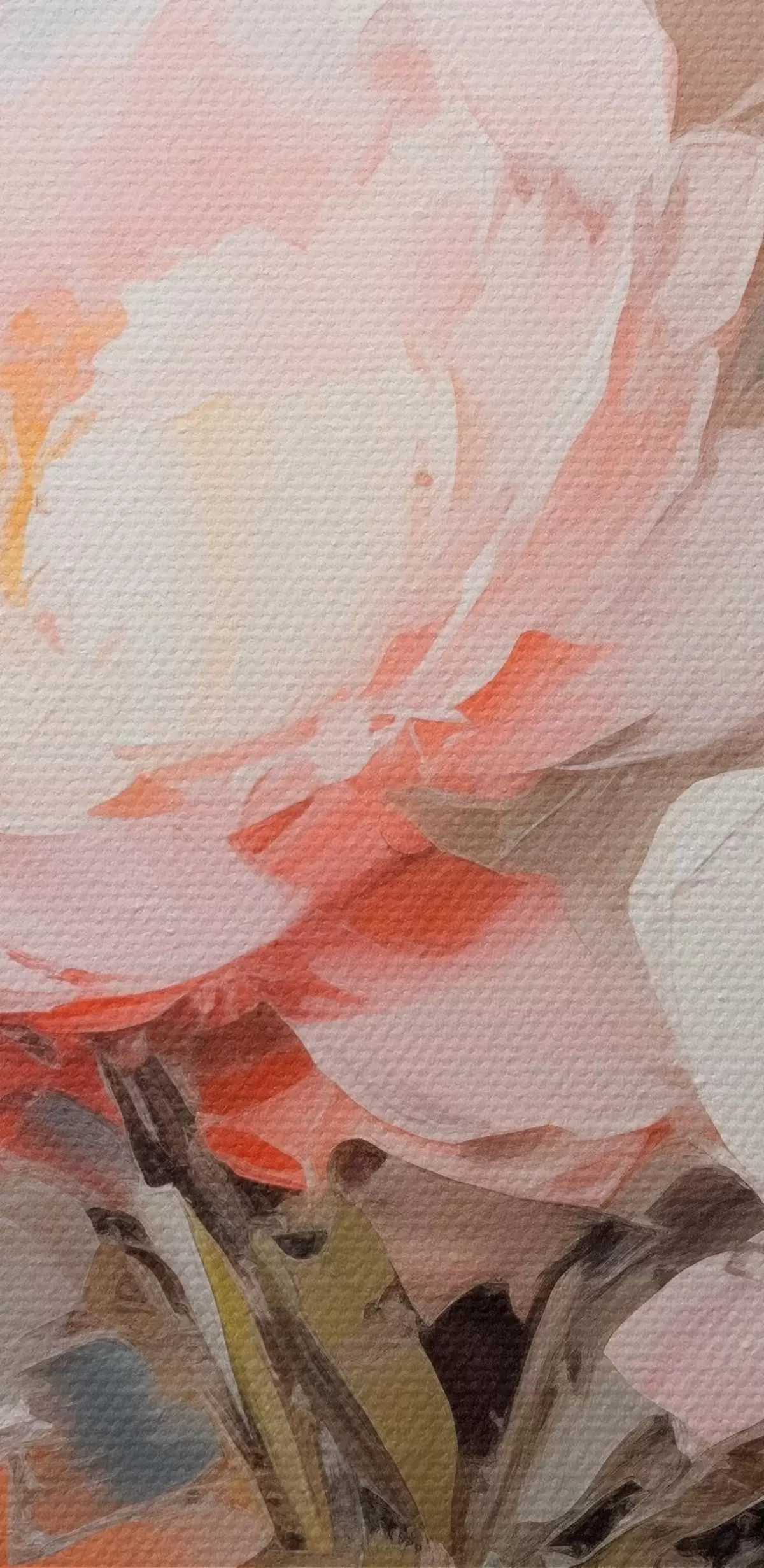 Картина Букет рожевих і білих півоній у скляній вазі, м'які мазки, пастельні кольори, нейтральний фон s46295