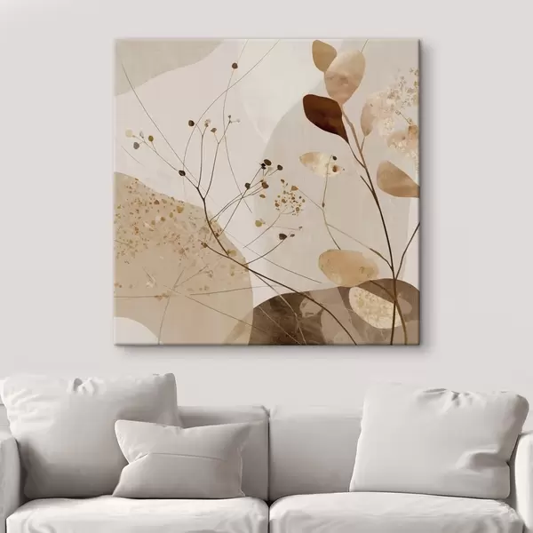 Картина Абстрактні форми та рослинні мотиви в бежевих тонах Арт. s46309