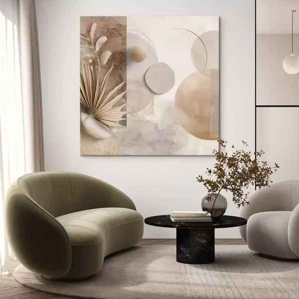 Картина Сушені пальмові листя і 3D-кола в бежевих тонах Арт. s46310