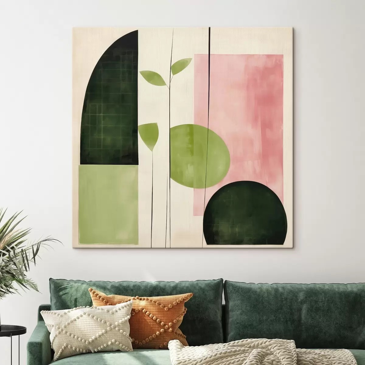 Картина Сучасний мінімалістичний стиль з рожевими та зеленими блоками Арт. s46312