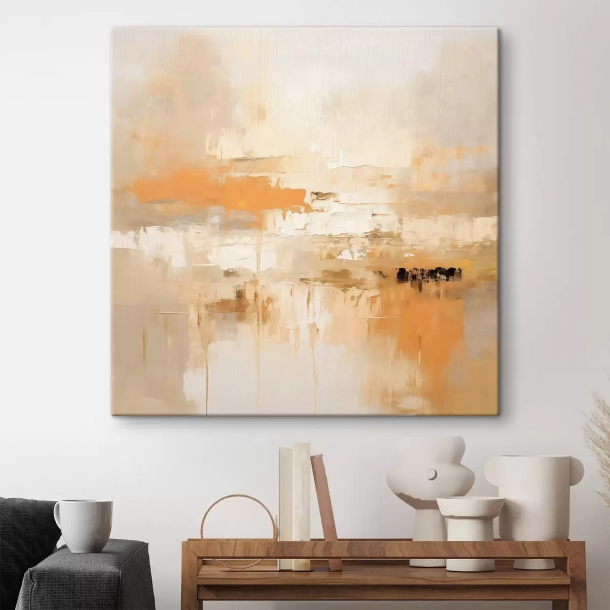 Картина Ландшафтна абстракція в масляному стилі з помаранчевими та бежевими тонами Арт. s46314