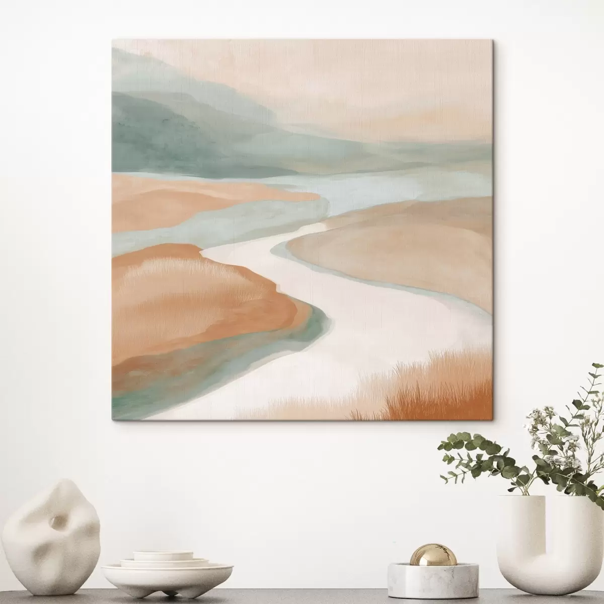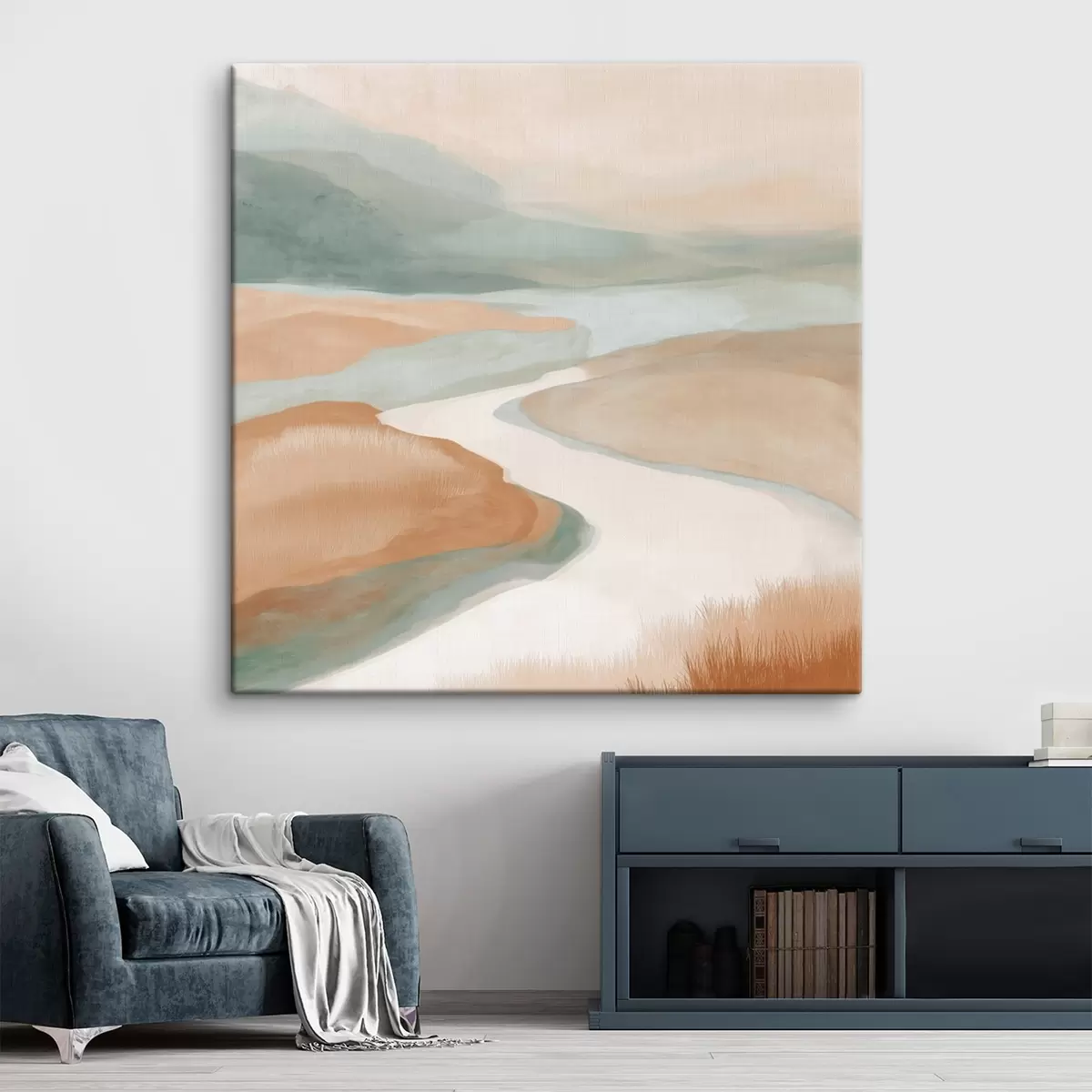 Картина Абстрактний пейзаж з річкою в помаранчевому та зеленому кольорах Арт. s46316
