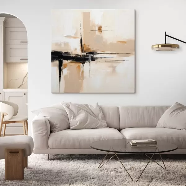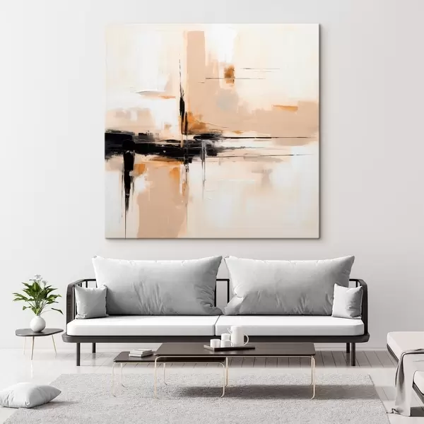 Картина Бежевий і чорний, вертикальна абстракція в стилі мінімалізму Арт. s46326