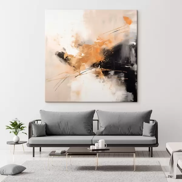 Картина Помаранчеві та чорні штрихи, сучасна абстракція Арт. s46327