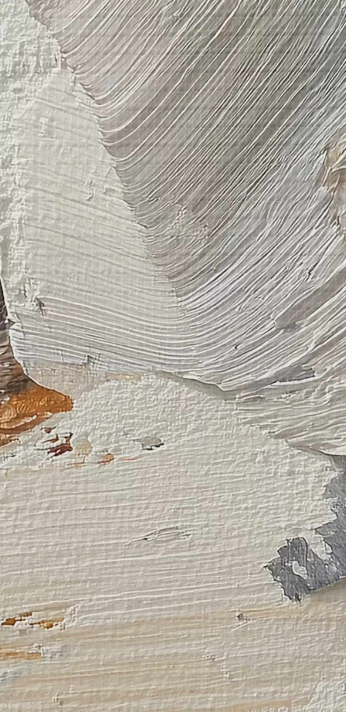 Картину можна акуратно протерти сухою м'якою тканиною або губкою, не рекомендується використовувати вологі засоби. Використання вологої губки допускається тільки в тому випадку, якщо картина була покрита лаком.
