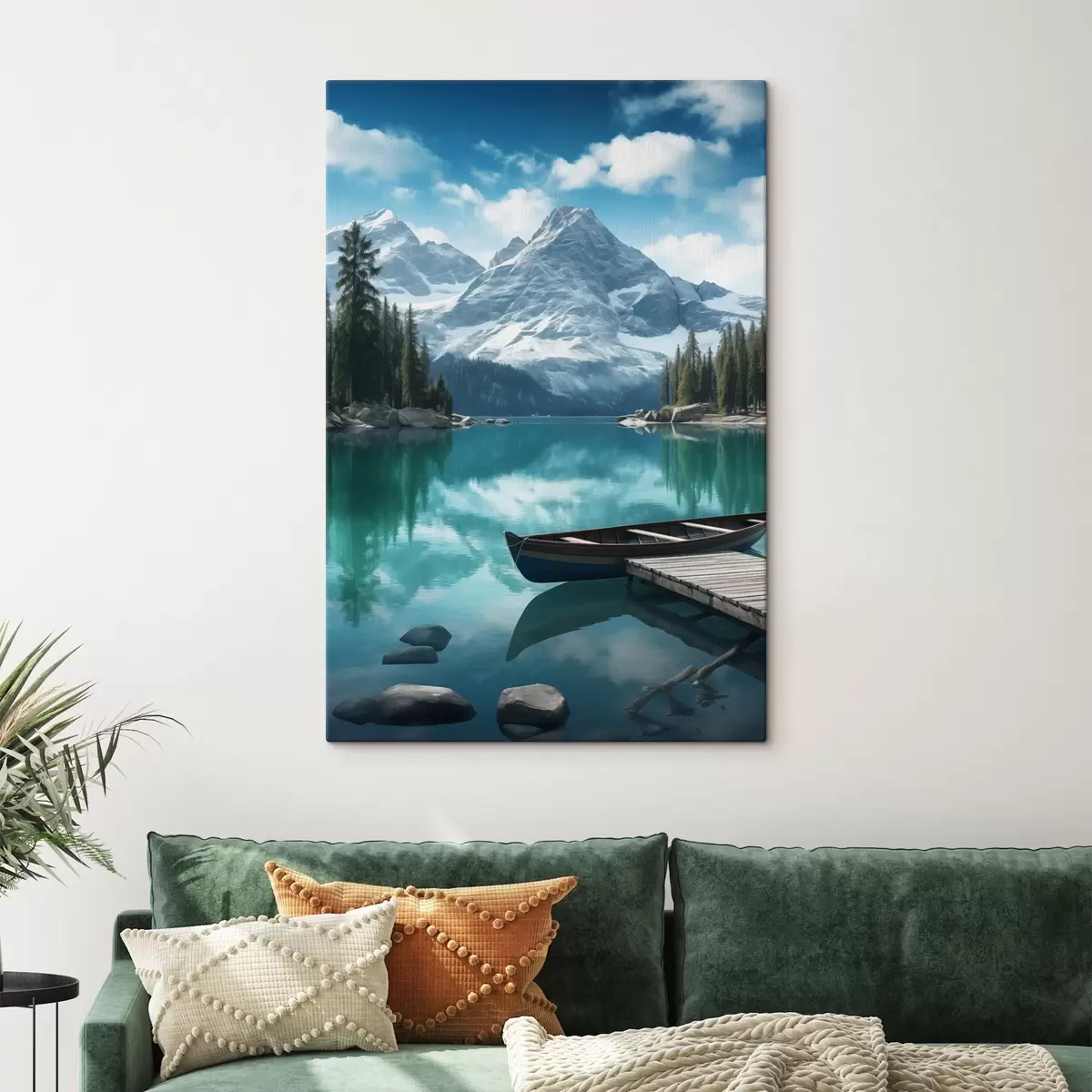 Картина Альпійське озеро з каное і засніженими вершинами s46481