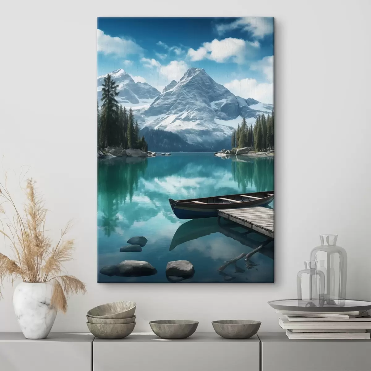 Картина Альпійське озеро з каное і засніженими вершинами Арт. s46481