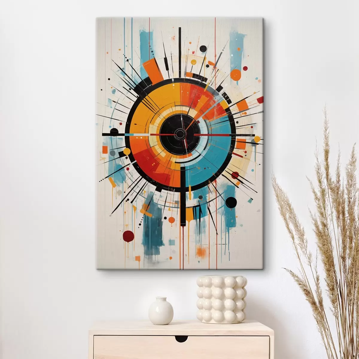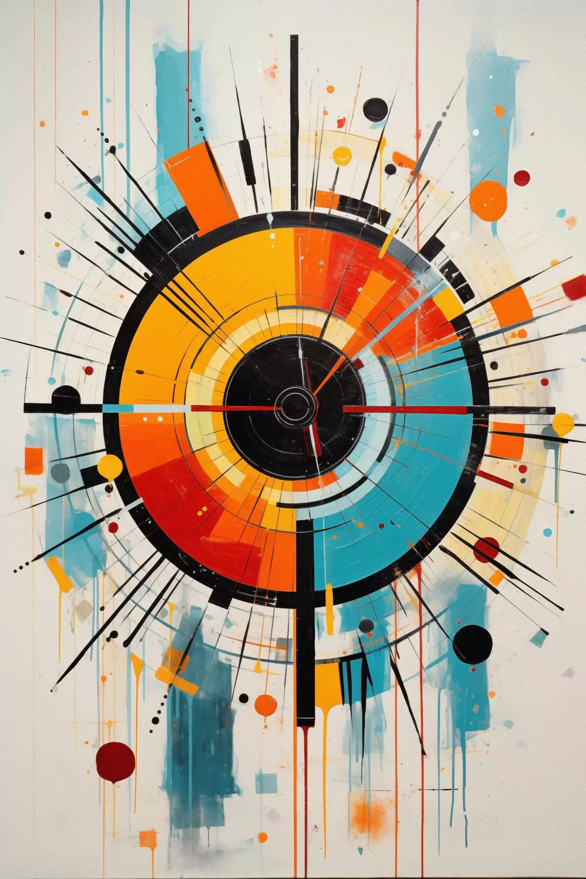 Картина Радіальний вибух у кольорах синьо-зеленого, оранжевого та чорного Арт. s46485