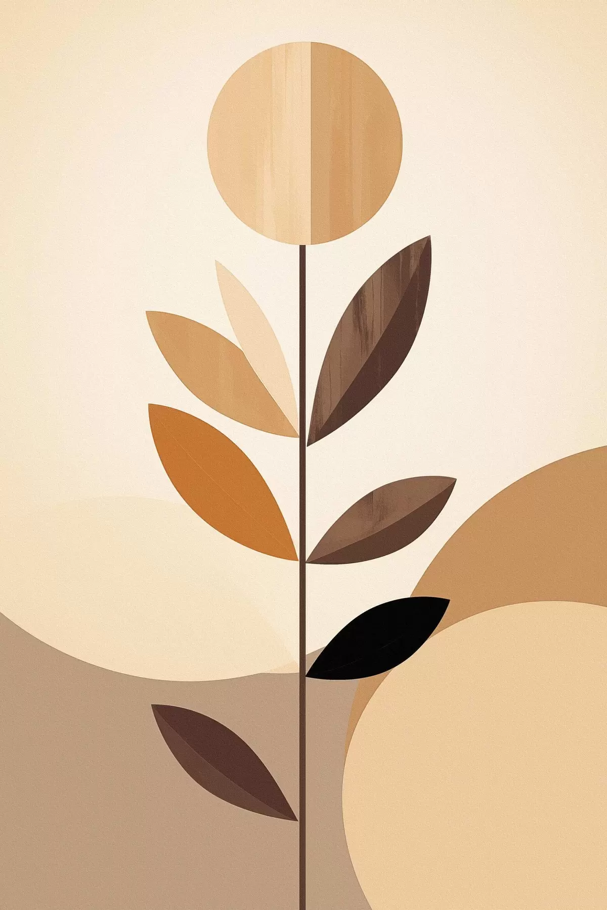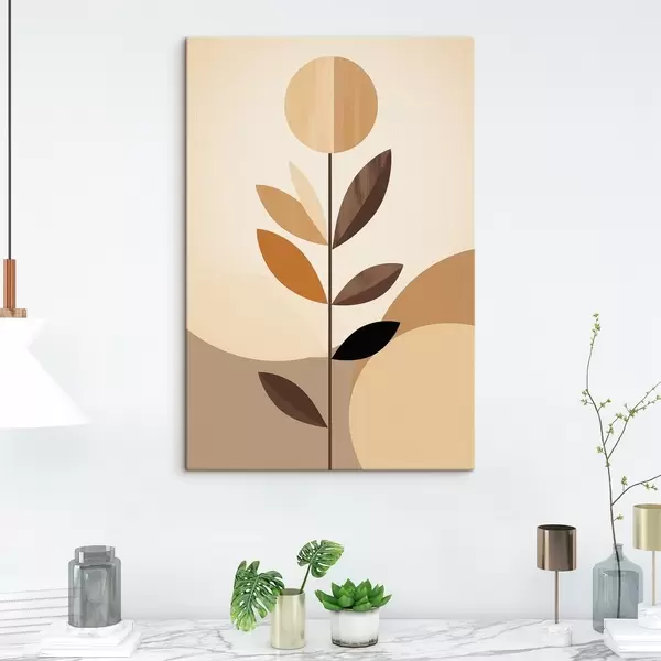 Картина Стилізована квітка з геометричними листям у теплих тонах s46500
