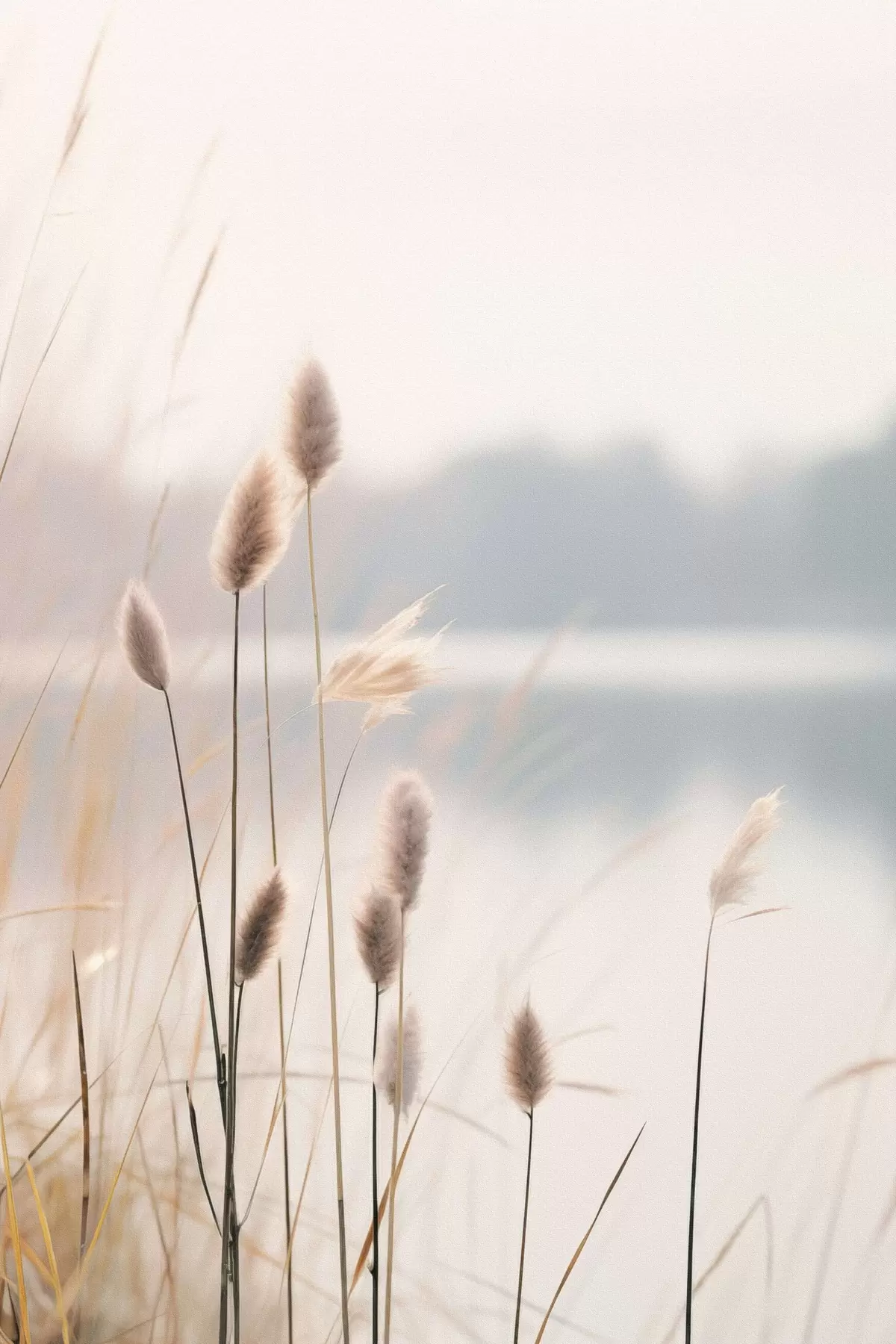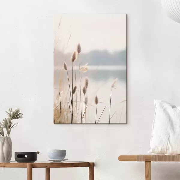 Картина М'які очерети на березі туманного озера, пастельні бежеві тони s46504